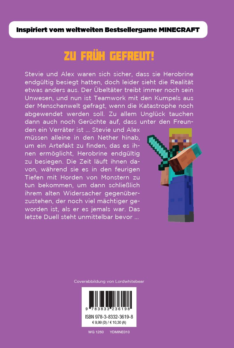 ZU FRÜH GEFREUT!Stevie und Alex waren sich sicher, dass sie Herobrine endgültig besiegt hatten, doch leider sieht die Realität etwas anders aus. Der Übeltäter treibt immer noch sein Unwesen, und nun ist Teamwork mit den Kumpels aus der Menschenwelt gefragt, wenn die Katastrophe noch abgewendet werden soll. Zu allem Unglück tauchen dann auch noch Gerüchte auf, dass unter den Freunden ein Verräter ist ... Stevie und Alex müssen alleine in den Nether hinab, um ein Artefakt zu finden, das es ihnen ermöglicht, Herobrine endgültig zu besiegen. Die Zeit läuft ihnen davon, während sie es in den feurigen Tiefen mit Horden von Monstern zu tun bekommen, um dann schließlich ihrem alten Widersacher gegenüberzustehen, der noch viel mächtiger geworden ist, als er es jemals war. Das letzte Duell steht unmittelbar bevor ...Coverabbildung von Lordwhitebear