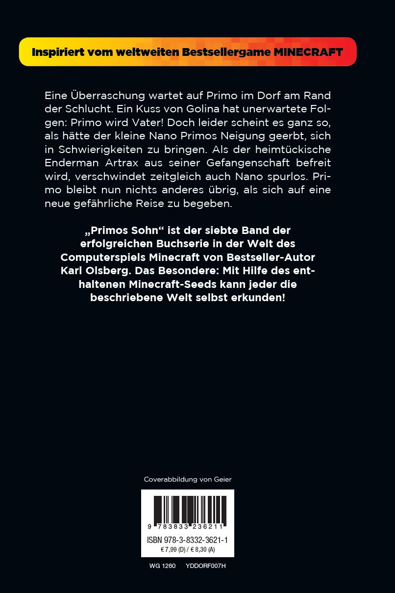 Eine Überraschung wartet auf Primo im Dorf am Rand der Schlucht. Ein Kuss von Golina hat unerwartete Folgen: Primo wird Vater! Doch leider scheint es ganz so, als hätte der kleine Nano Primos Neigung geerbt, sich in Schwierigkeiten zu bringen. Als der heimtückische Enderman Artrax aus seiner Gefangenschaft befreit wird, verschwindet zeitgleich auch Nano spurlos. Primo bleibt nun nichts anderes übrig, als sich auf eine neue gefährliche Reise zu begeben."Primos Sohn" ist der siebte Band der erfolgreichen Buchserie in der Welt des Computerspiels Minecraft von Bestseller-Autor Karl Olsberg. Das Besondere: Mit Hilfe des enthaltenen Minecraft-Seeds kann jeder die beschriebene Welt selbst erkunden!