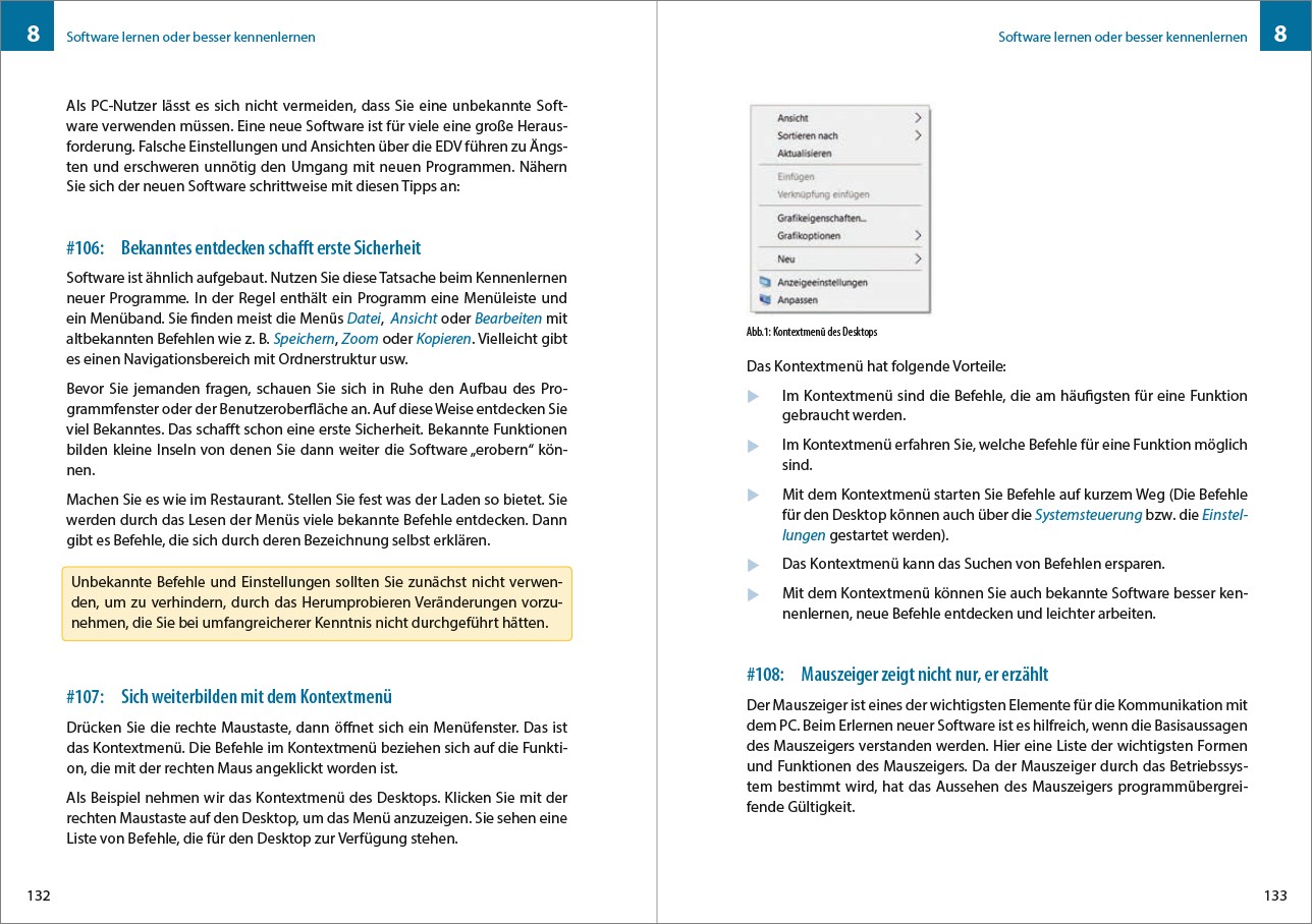 Beobachtet man Kollegen oder Freunde am Computer, gibt es solche, die die PC-Arbeit effizienter, eleganter und einfach schneller erledigen. Wer will das nicht! In diesem Buch finden Sie Tipps, die Sie täglich anwenden können und die Ihre Arbeit am PC erleichtern. Der Autor hilft beim Entrümpeln des Desktops, zeigt, wie Sie das Startmenü für einen schnelleren Zugriff anpassen, mit welchen einfachen Tricks Sie Fehlerquellen minimieren können, das Ordner- und Dateichaos vermeiden und effizient mit zwei Monitoren arbeiten. Erfahren Sie, was in der Praxis wirklich hilft!
