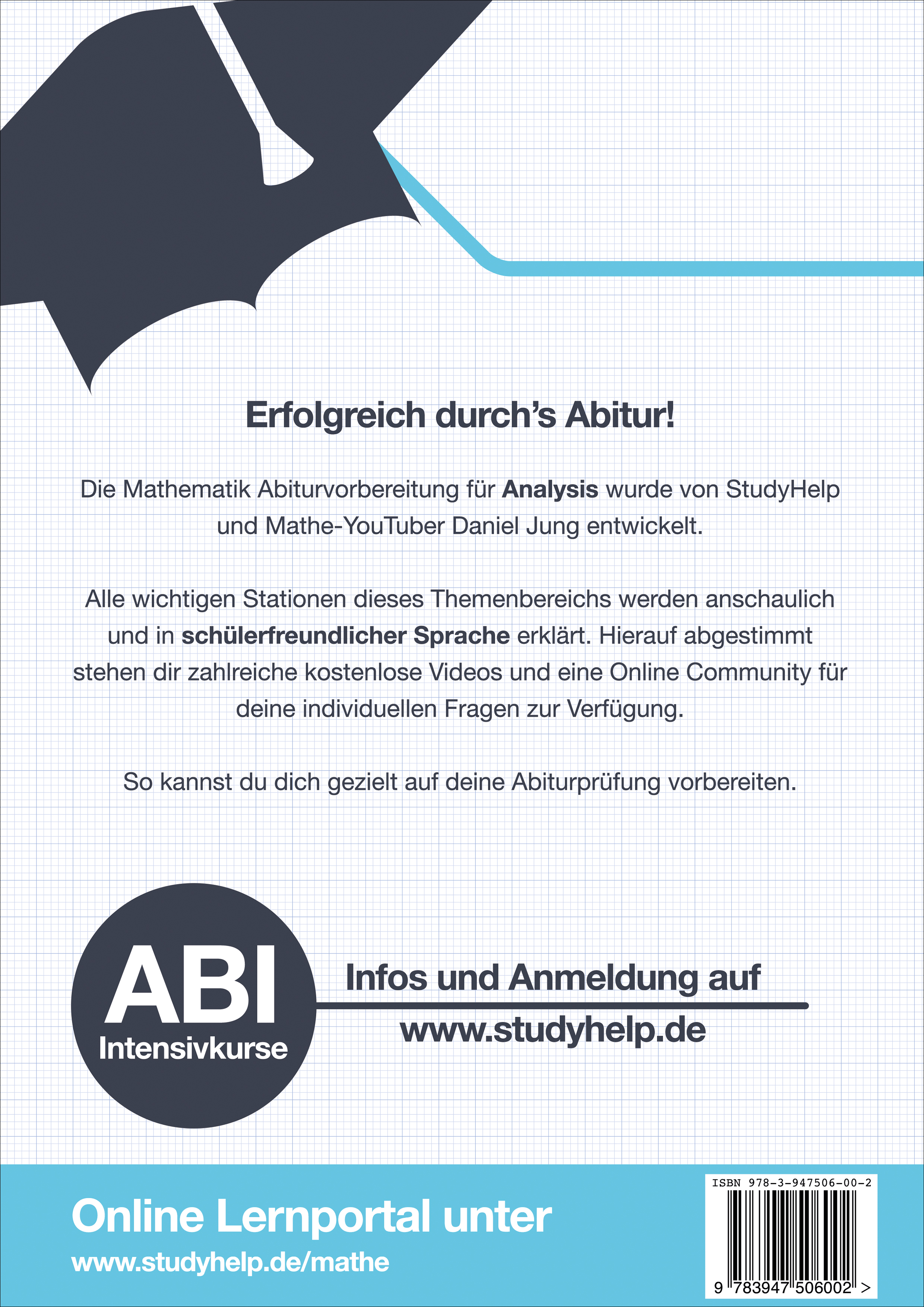 Hey, StudyHelp und ich haben das ultimative Konzept zur Abiturvorbereitung entwickelt. Indem du mit dieser Methode lernst, legst du den wichtigsten Grundstein für das erfolgreiche Bestehen deiner Mathe-Abiturprüfung. Die bestmögliche Vorbereitung auf das Abitur besteht dabei aus folgenden Komponenten: Ich habe zu allen Erklärungen im Heft eine Vielzahl an Erklärvideos auf YouTube für dich erstellt und diese in themenbezogene Playlists integriert. Insgesamt sind es so schon über 2500 kostenlose Videos, die dich beim Lernen unterstützen. Zusätzlich zu Heft und den Videos bietet StudyHelp in deiner Nähe Intensivkurse für das Abitur an. Sichere dir jetzt deinen Platz unter www.studyhelp.de Sollten noch Fragen offen bleiben, kannst du diese 24/7 in unserer Mathe Community unter chat.studyhelp.de stellen. Ich wünsche dir viel Erfolg bei deiner Abiprüfung - let´s rock Mathe!