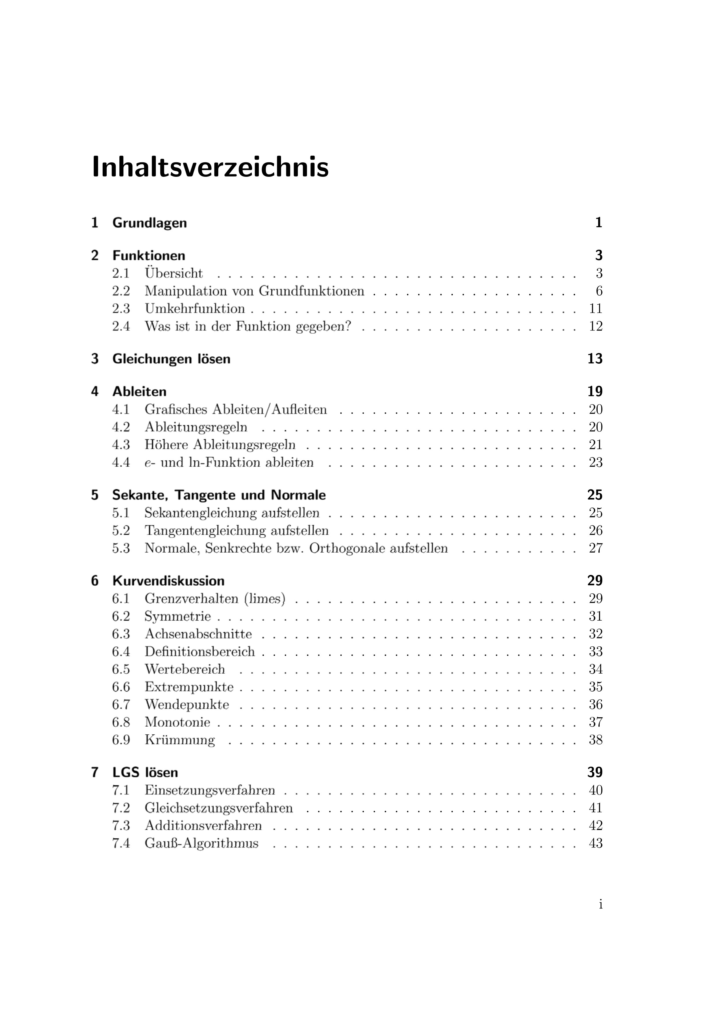 Im Lernheft werden folgende Themen behandelt: Grundlagen – Funktionen - Von Sekante zu Tangente - Ableiten - Gleichungen lösen - LGS lösen - Kurvendiskussion - Steckbriefaufgaben - Extremwertprobleme - e-Funktionen - ln-Funktionen - Rationale Funktionen - Scharfunktionen - Trigonometrische Funktionen - Specials.