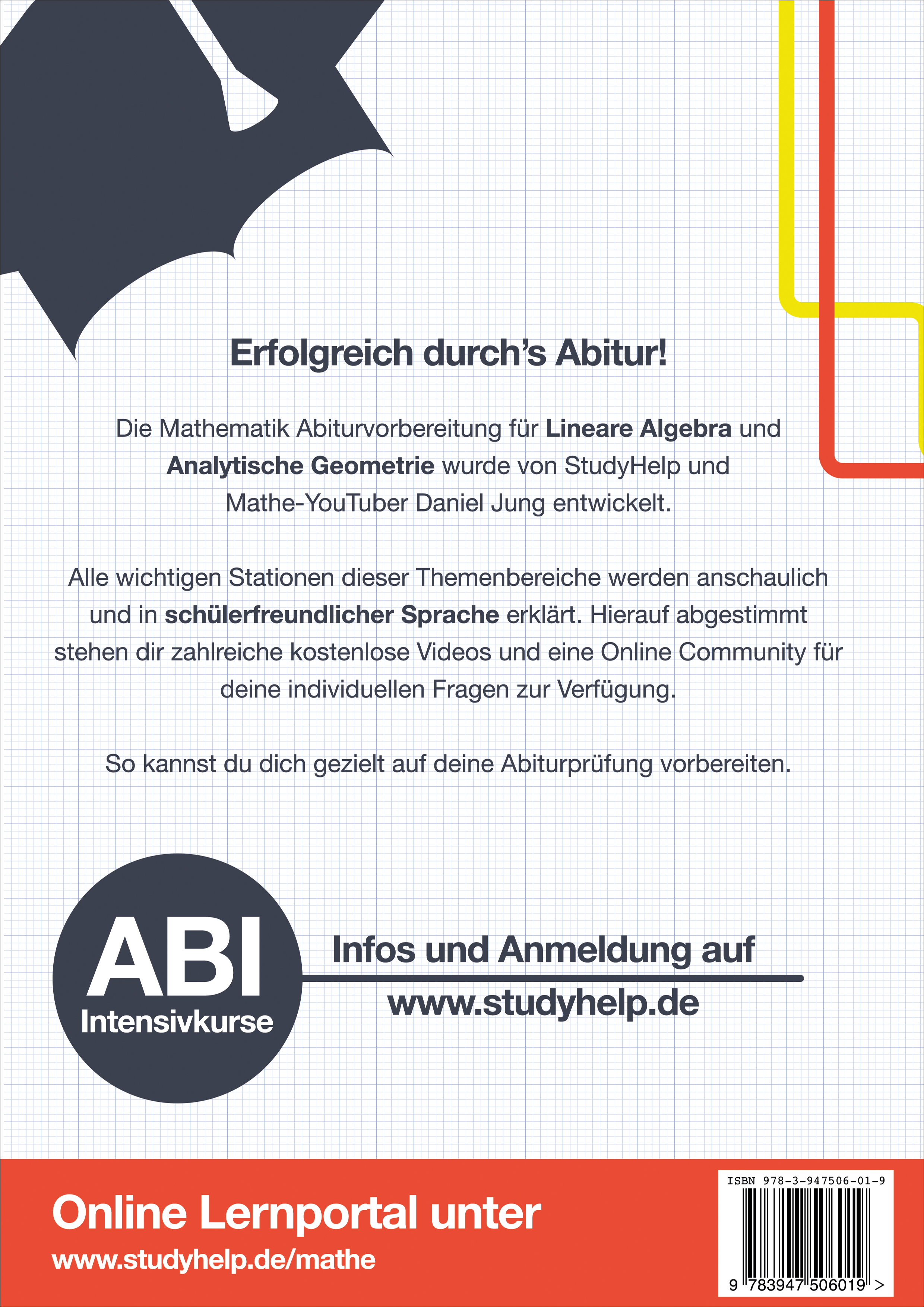 Hey, StudyHelp und ich haben das ultimative Konzept zur Abiturvorbereitung entwickelt. Indem du mit dieser Methode lernst, legst du den wichtigsten Grundstein für das erfolgreiche Bestehen deiner Mathe-Abiturprüfung. Die bestmögliche Vorbereitung auf das Abitur besteht dabei aus folgenden Komponenten: Ich habe zu allen Erklärungen im Heft eine Vielzahl an Erklärvideos auf YouTube für dich erstellt und diese in themenbezogene Playlists integriert. Insgesamt sind es so schon über 2500 kostenlose Videos, die dich beim Lernen unterstützen. Zusätzlich zu Heft und den Videos bietet StudyHelp in deiner Nähe Intensivkurse für das Abitur an. Sichere dir jetzt deinen Platz unter www.studyhelp.de Sollten noch Fragen offen bleiben, kannst du diese 24/7 in unserer Mathe Community unter chat.studyhelp.de stellen. Ich wünsche dir viel Erfolg bei deiner Abiprüfung - let´s rock Mathe!