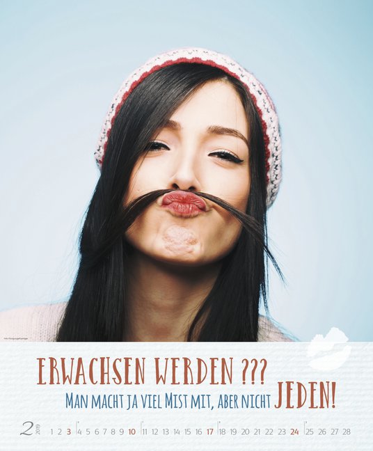 Produktmerkmale- Hochformat: 45,5 x 55 cm; Edles Foliendeckblatt und stabile Rückwand- Randabfallende Bilder für herausragende Wirkung- Witzige Bilder gepaart mit Lustigen-sinnigen-Botschaften in verschiedenen Schriftarten- Internationales Kalendarium mit hervorgehobenen Sonn- und Feiertagen- Hochwertiger Druck auf umweltfreundlichem FSC PapierAlles andere als normal und langweilig ist dieser Posterkalender, der garantiert das ganze Jahr für gute Laune sorgen wird. Witzige Fotos und coole Trendsprüche wurden auf jedem Blatt zu einem grafischen Gesamtkunstwerk verknüpft. Der perfekte Wandschmuck für alle, die lieber relaxen und das Leben genießen, statt sich unnötig zu stressen!