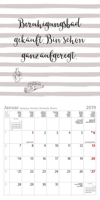 Typo-Art Broschürenkalender mit Ferienterminen. Wandkalender mit netten Sprüchen. 30x30 cm