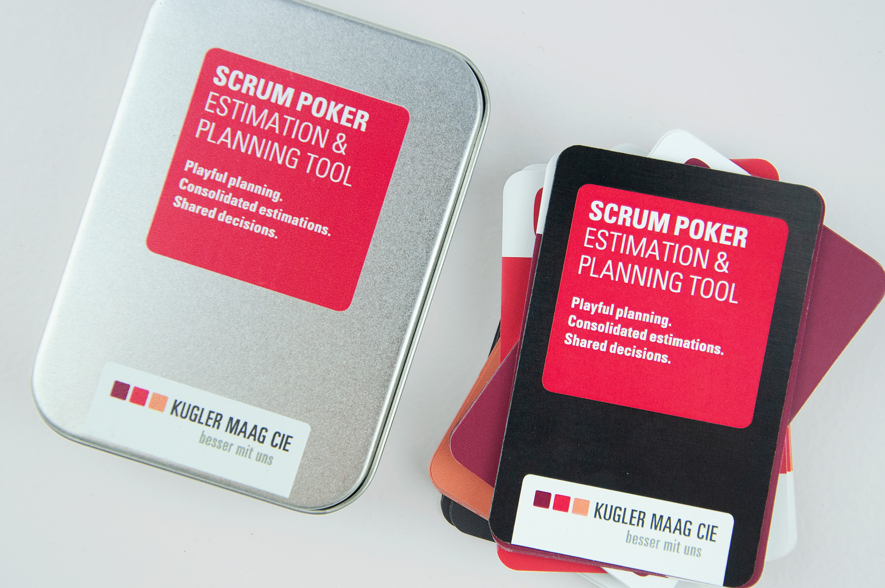 Scrum Poker comes in an attractive metal box. Auch als Planning Poker bekannt. Dieses agile Werkzeug unterstützt Ihr Scrum- oder Kanban-Team, Arbeitsaufwände spielerisch zu schätzen. Dadurch wird die Diskussion angeregt, unterschiedliche Sichtweisen werden in die Schätzung einbezogen. Durch den Diskussionsprozess stärken Sie das Team-Commitment und härten die Aussagekraft der Schätzung.