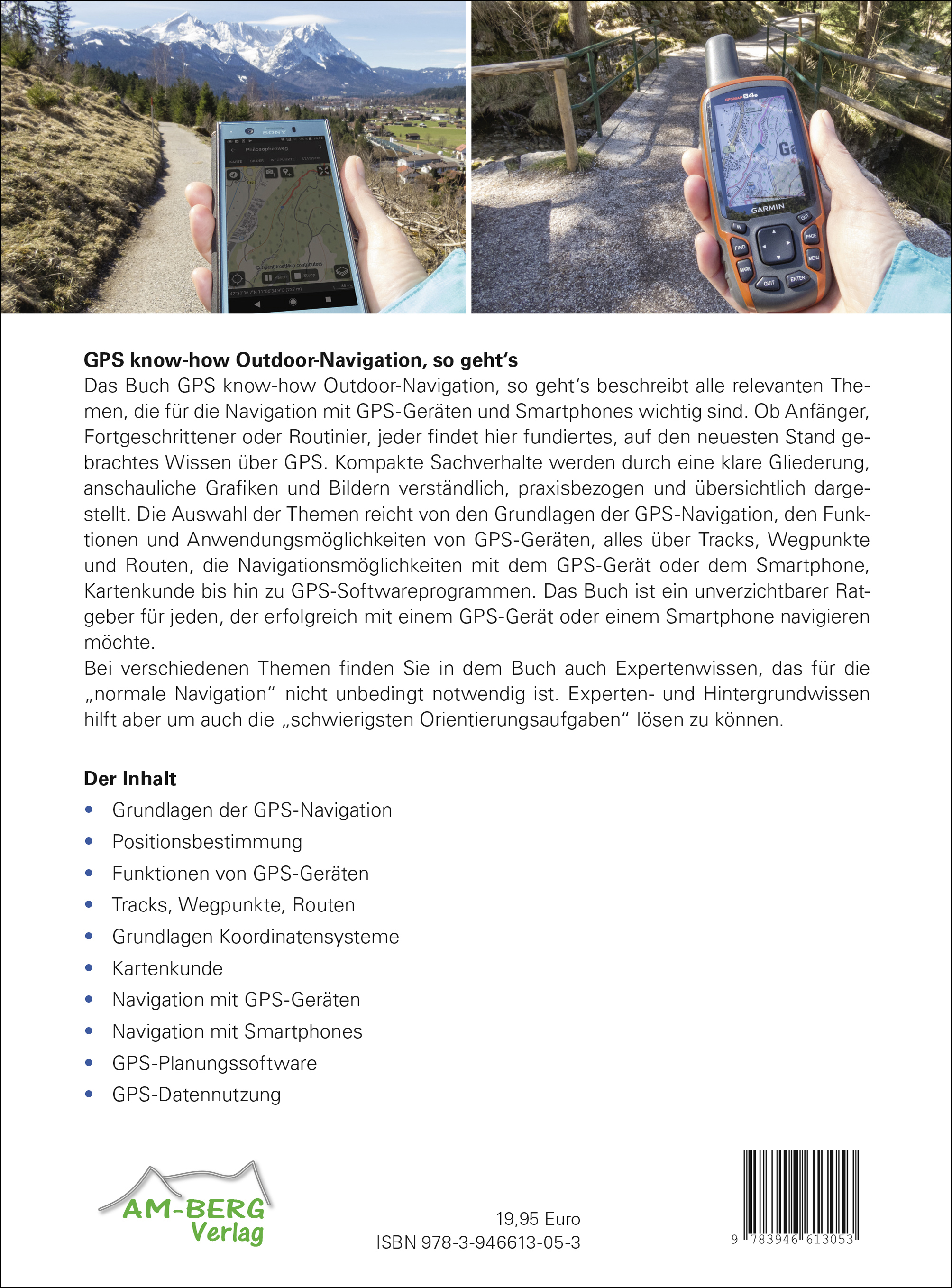 GPS know-how Outdoor-Navigation, so geht'smit GPS-Gerät und SmartphoneDas Buch GPS know-how Outdoor-Navigation, so geht's beschreibt alle relevanten Themen, die für die Navigation mit GPS-Geräte und Smartphones wichtig sind. Ob Anfänger, Fortgeschrittener oder Routinier, jeder findet hier fundiertes, auf den neuesten Stand gebrachtes Wissen über GPS. Kompakte Sachverhalte werden durch eine klare Gliederung, anschaulichen Grafiken und Bildern verständlich, praxisbezogen und übersichtlich dargestellt. Das breite Spektrum der Themen reicht von den Grundlagen der GPS-Navigation, den Funktionen und Anwendungsmöglichkeiten von GPS-Geräten, alles über Tracks, Wegpunkte und Routen, die Navigationsmöglichkeiten mit dem GPS-Gerät oder dem Smartphone, Kartenkunde bis hin zu GPS-Softwareprogrammen. Das Buch ist ein unverzichtbarer Ratgeber für jeden, der erfolgreich mit einem GPS-Gerät oder einem Smartphone navigieren möchte. Bei verschiedenen Themen finden Sie in dem Buch auch Expertenwissen, das für die "normale Navigation" nicht unbedingt notwendig ist. Experten- und Hintergrundwissen hilft aber um auch die "schwierigsten Orientierungsaufgaben" lösen zu können.Der Inhalt-Grundlagen der GPS-Navigation-Positionsbestimmung-Funktionen von GPS-Geräten-Tracks, Wegpunkte, Routen-Navigation mit GPS-Geräten-Grundlagen Koordinatensysteme-Kartenkunde-Navigation mit Smartphones-GPS-Planungssoftware-GPS-Datennutzung