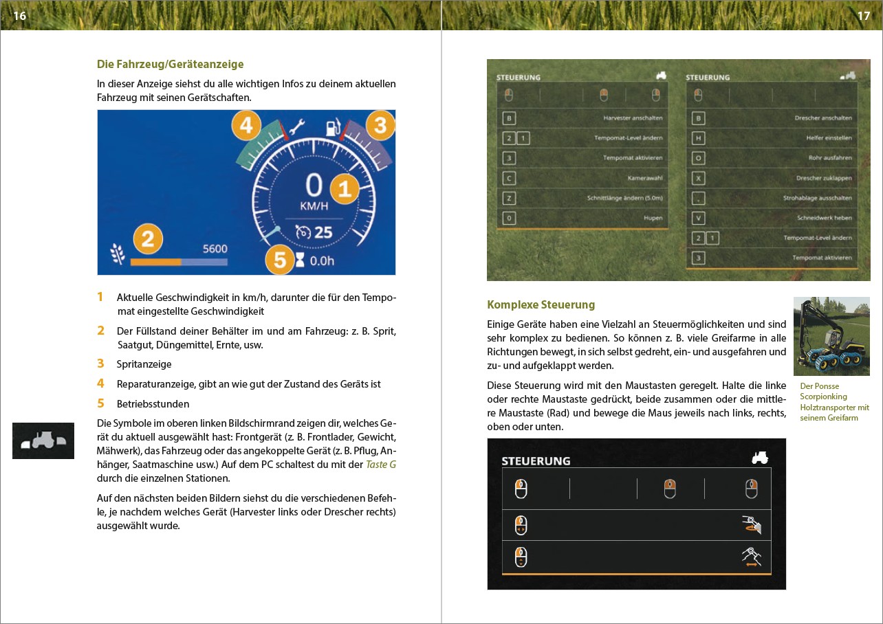 Darüber hinaus bekommst du Tipps und Tricks zu Geldverdienen, Anbau, und Tierzucht. Um noch mehr Möglichkeiten zu haben, erklärt das Buch das Verändern von Dateien und Spielständen und wie du Mod‘s und DLCs nutzen kannst. Eine große Liste über alle Geräte und Fahrzeuge rundet das Buch ab.