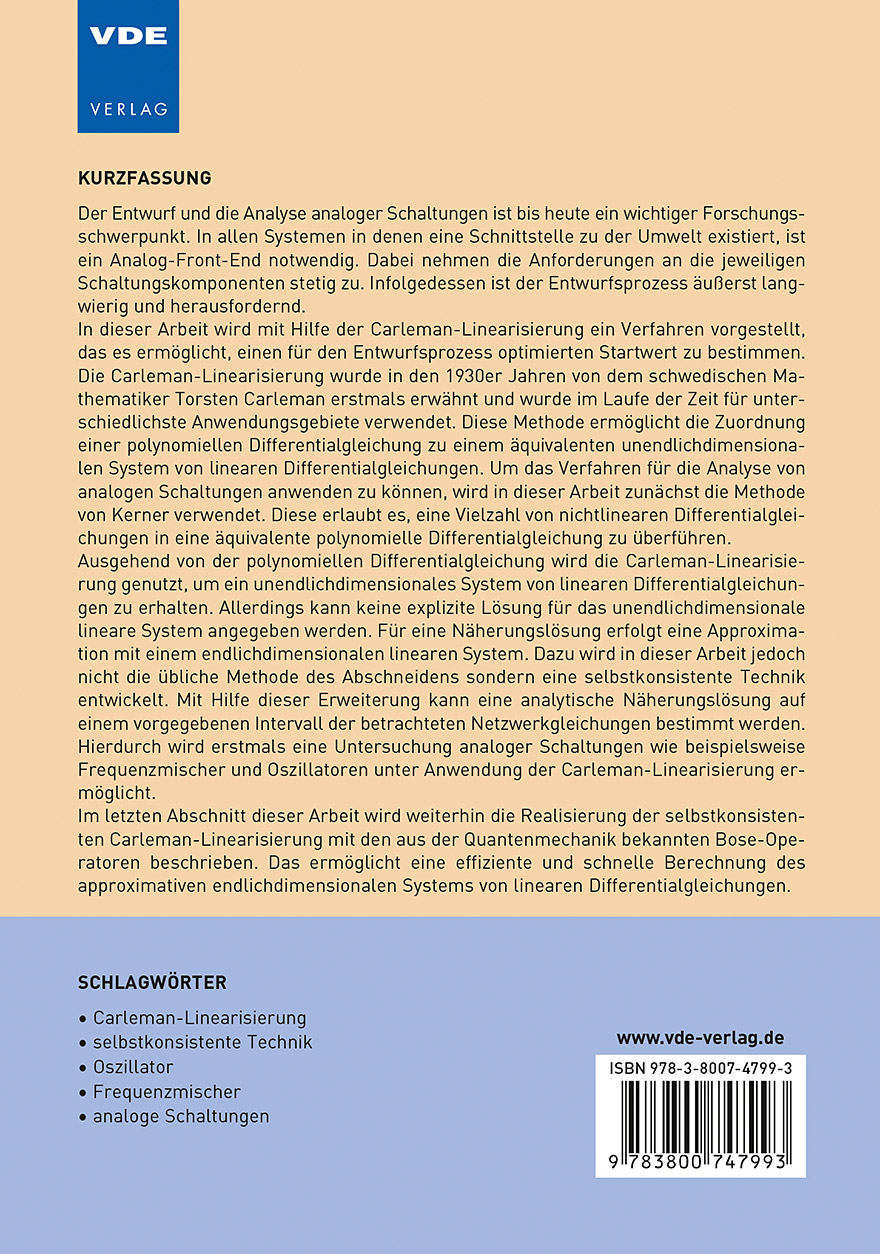 | Schlagworte | Analoge Schaltungen • Carleman-Linearisierung • Frequenzmischer • Oszillator • selbstkonsistente Technik |
