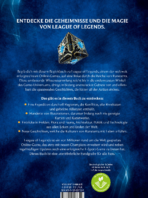 Illustriert mit wunderschönen Karten und Charakterporträts, enthält das Buch Beschreibungen der Landschaften, der Geschichte und der Helden der Spielwelt Runeterra.