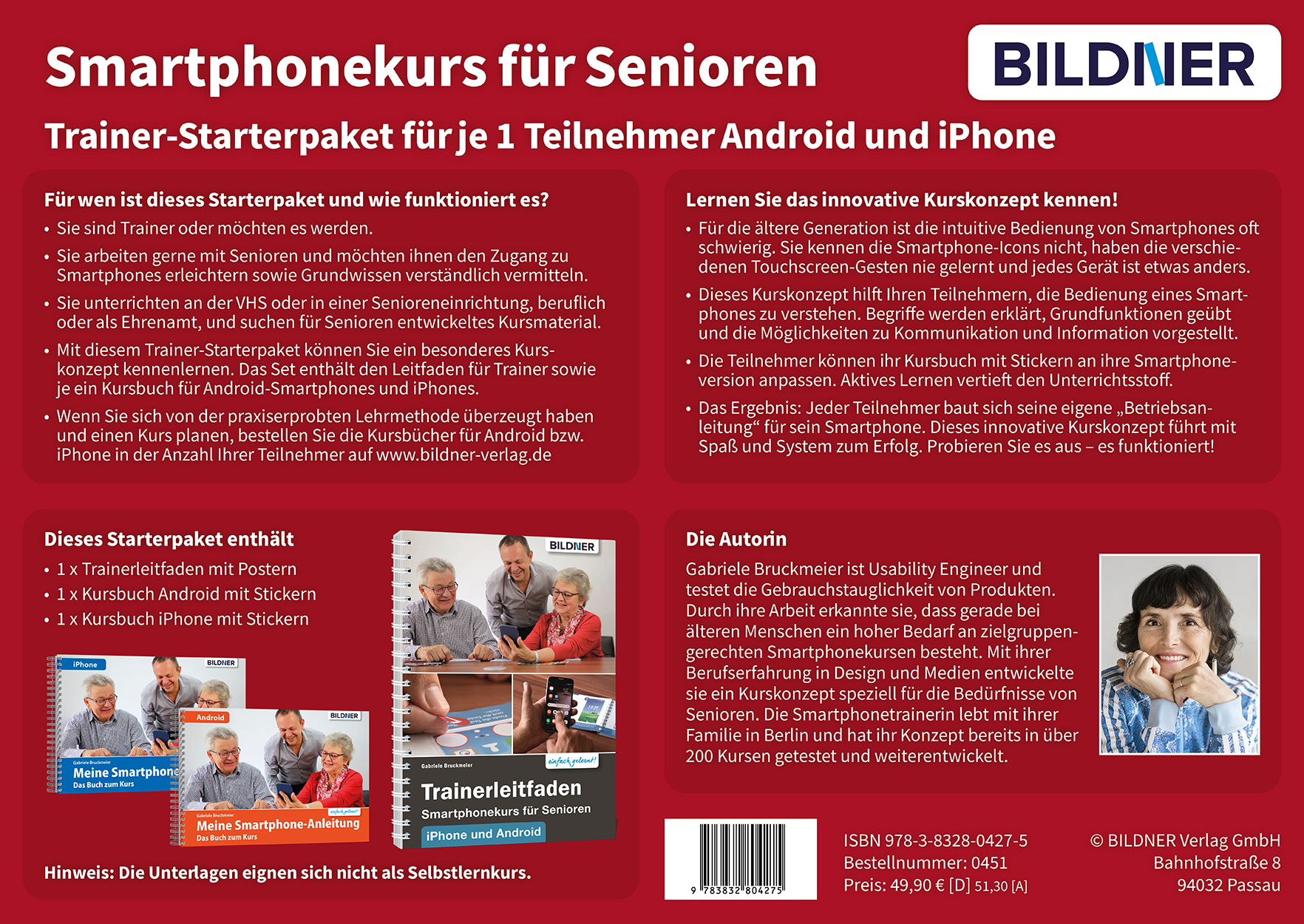 - Mit diesem Trainer-Starterpaket können Sie ein besonderes Kurskonzept kennenlernen. Das Set enthält den Leitfaden für Trainer sowie je ein Kursbuch für Android-Smartphones und iPhones.
