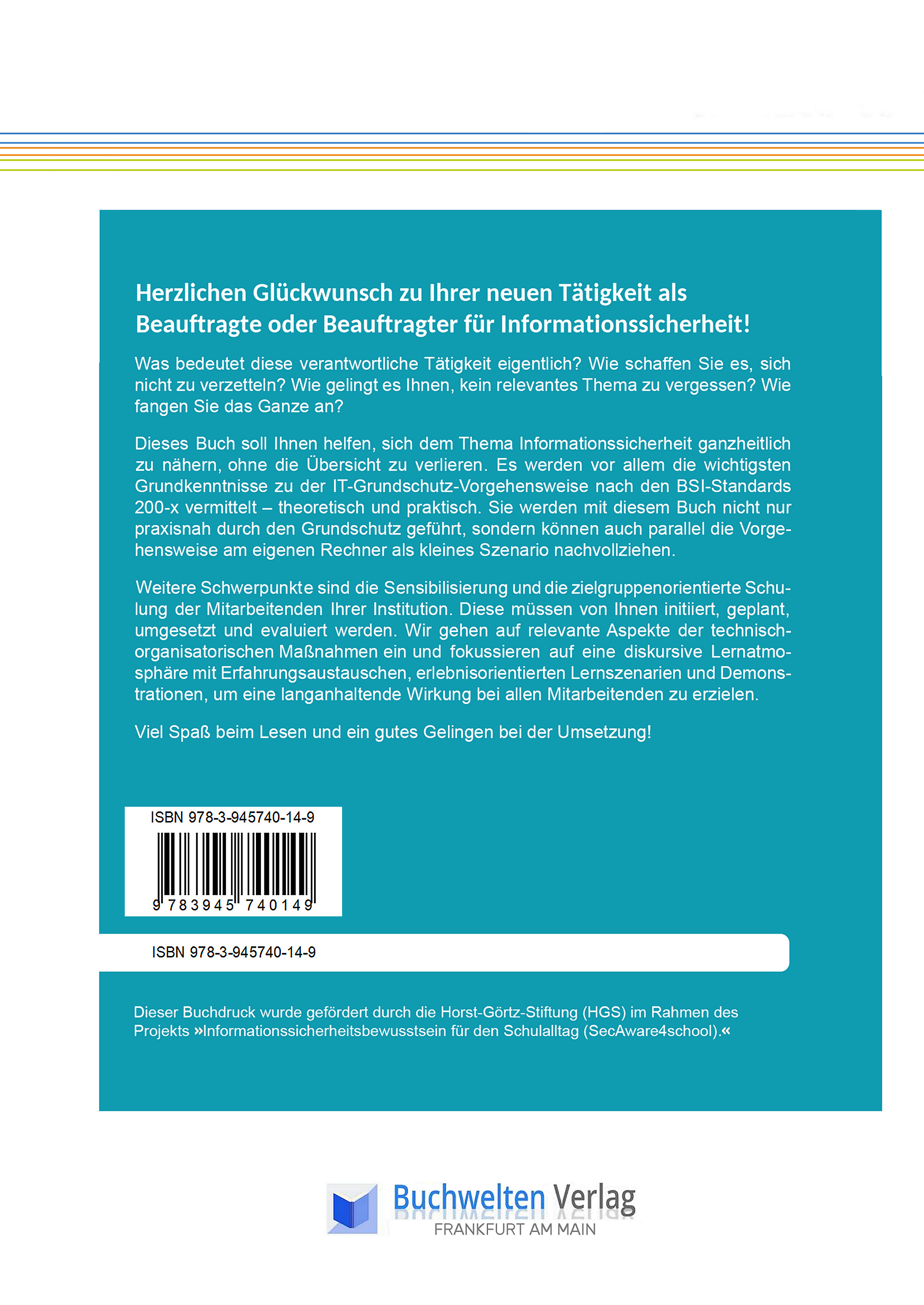 | Schlagworte | BSI-Standards 200-x • Informationsssicherheit • ISO/IEC 2700x • IT-Grundschutz-Kompendium • IT-SecAware4job • IT-SecAware4school • IT-Sicherheit • Realisierungsplanung • security |