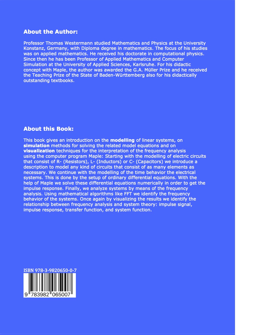 This book gives an introduction on the modelling of linear systems, on simulation methods for solving the related model equations and on visualization techniques for the interpretation of the frequency analysis using the computer program Maple: Starting with the modelling of electric circuits that consist of R- (Resistors), L- (Inductors) or C- (Capacitors) we introduce a description to model any kind of circuits that consist of as many elements as necessary. We continue with the modelling of the time behavior the electrical systems. This is done by the setup of ordinary differential equations. With the help of Maple we solve these differential equations numerically in order to get the impulse response. Finally, we analyze systems by means of the frequency analysis. Using mathematical algorithms like FFT we identify the frequency behavior of the systems. Once again by visualizing the results we identify the relationship between frequency analysis and system theory: impulse signal, impulse response, transfer function, and system function.