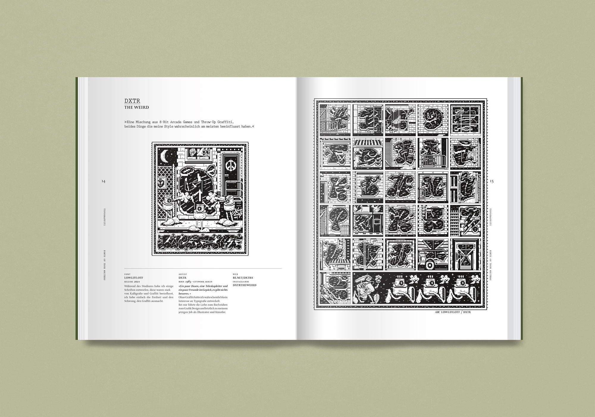Das Buch stellt alle Writer und ihre Schriften ausführlich vor, enthält begleitende Statements sowie Aufnahmen der Fonts in der Anwendung auf der Wand. So versteht sich die Publikation als Inspiration für Sprüher, Schriftgestalter, Grafiker und Kunstinteressierte.