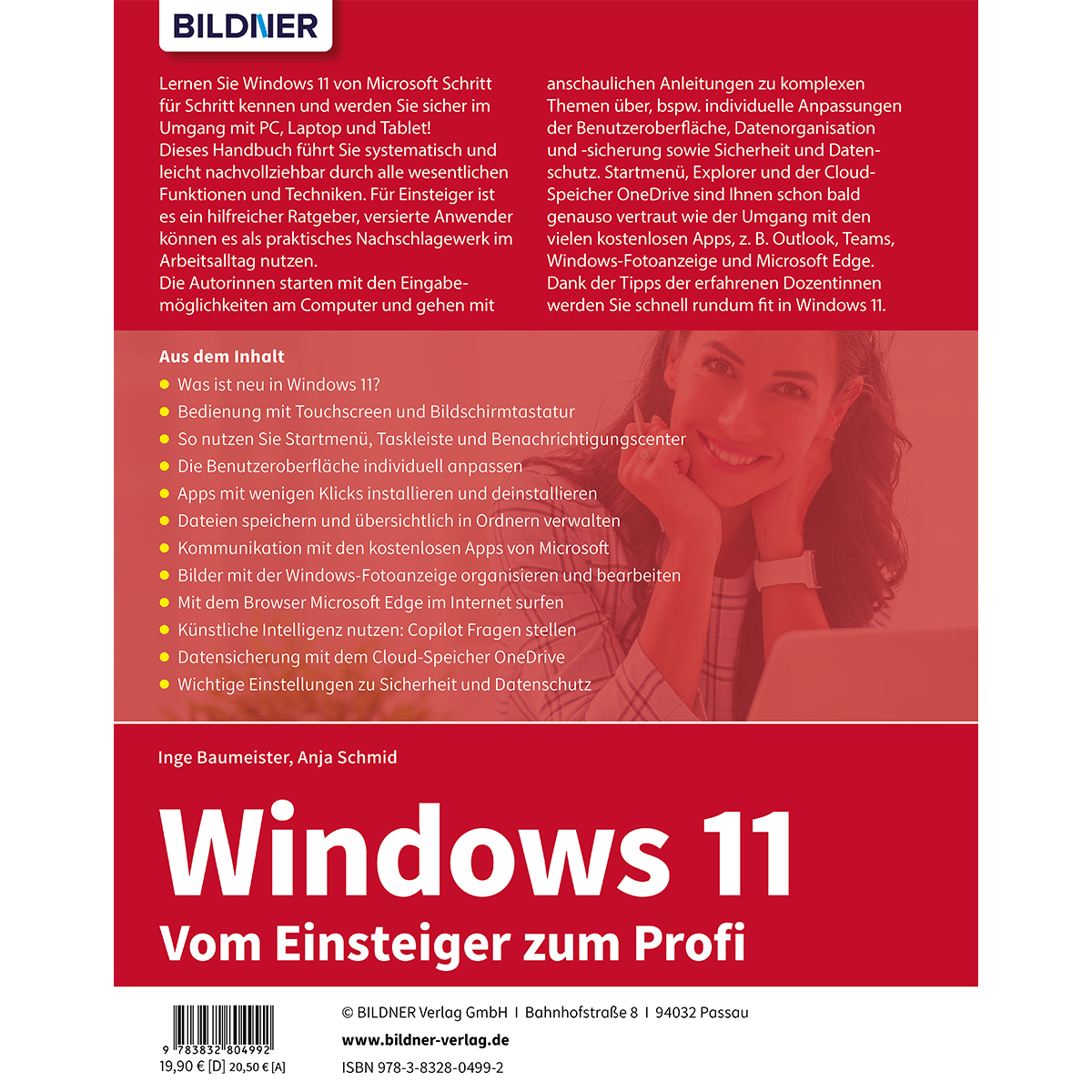 Die Autorinnen starten mit der grundlegenden Bedienung Ihres Computers und gehen mit anschaulichen Anleitungen zu komplexen Themen über, z. B. individuelle Anpassungen der Benutzeroberfläche, Datenorganisation und -sicherung sowie Sicherheit und Datenschutz. Startmenü, Explorer und der Cloud-Speicher OneDrive sind Ihnen schon bald genauso vertraut wie der Umgang mit den vielen kostenlosen Apps, u. a. Kalender, Mail, Fotos und der Internetbrowser Edge.