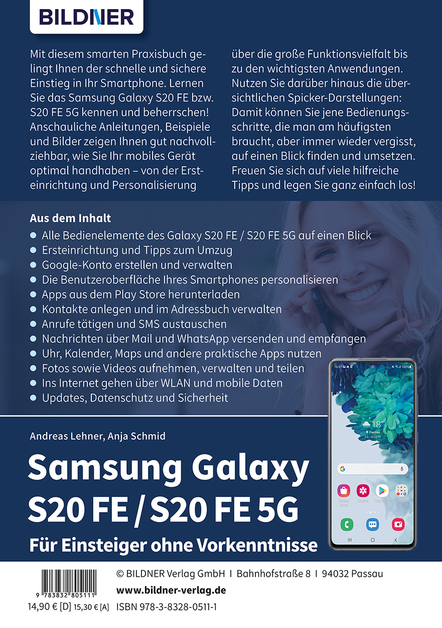 Mit diesem smarten Praxisbuch gelingt Ihnen der schnelle und sichere Einstieg in Ihr Smartphone. Lernen Sie das Samsung Galaxy S20 FE bzw. S20 FE 5G kennen und beherrschen! Anschauliche Anleitungen, Beispiele und Bilder zeigen Ihnen gut nachvollziehbar, wie Sie Ihr mobiles Gerät optimal handhaben - von der Ersteinrichtung und Personalisierung über die große Funktionsvielfalt bis zu den wichtigsten Anwendungen.