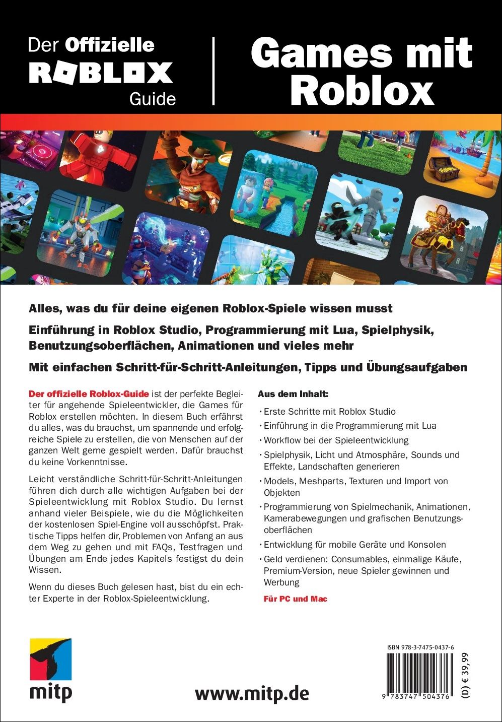 - Alles, was du für deine eigenen Roblox-Spiele wissen musst: Bedienung von Roblox Studio, Programmierung mit Lua, Spielphysik, Benutzungsoberflächen, Animationen und vieles mehr