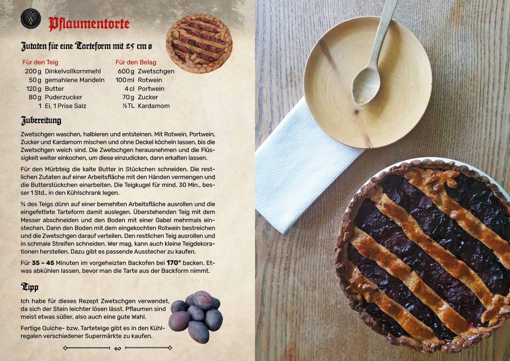 Die Rezepte im Buch orientieren sich an den simplen Gerichten, die auch im Spiel tatsächlich verfügbar sind und es werden möglichst mittelalterlich passende Zutaten verwendet. Und keine Sorge - die Rezepte sollen für jedermann leicht umsetzbar sein, daher wird mit einfachen Zutaten gearbeitet, die man problemlos überall bekommen kann.