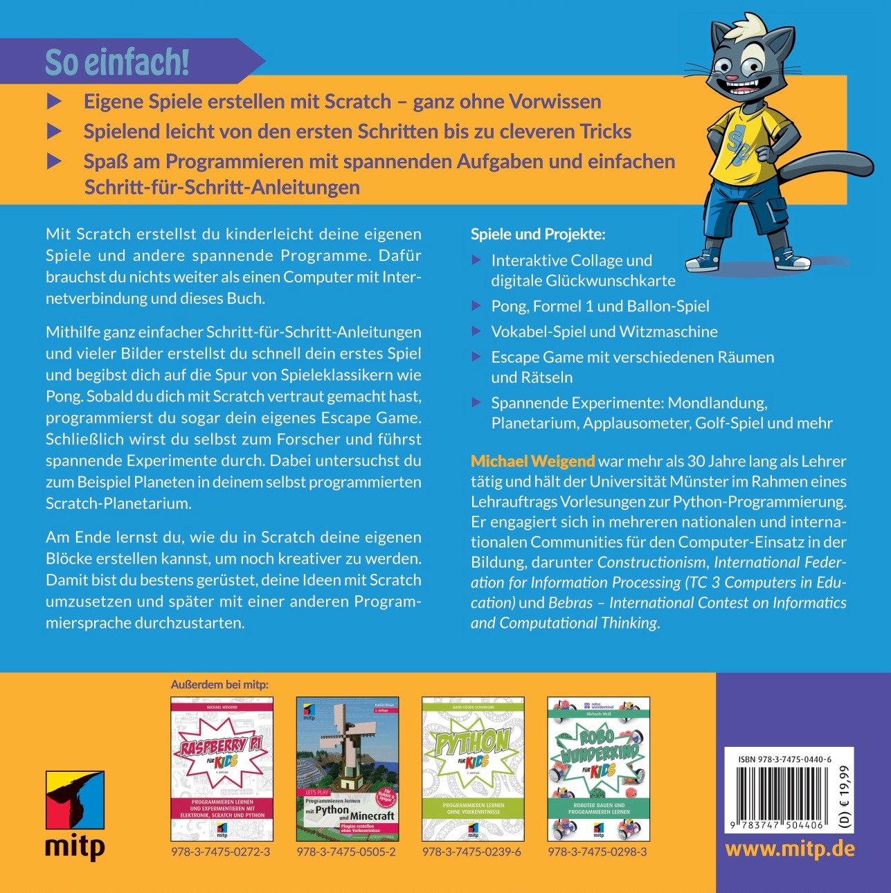 Mit Hilfe einfacher Schritt-für-Schritt-Anleitungen und vieler erklärender Bilder erstellst du schnell dein erstes kleines Spiel und begibst dich auf die Spur von Spieleklassikern wie Pong. Sobald du dich mit Scratch vertraut gemacht hast, programmierst du einen Rennwagen, eine Mondfähre und dein eigenes Escape Game. Schließlich wirst du zum Forscher und führst spannende Experimente durch. Dabei untersuchst du zum Beispiel Planeten in deinem selbst programmierten Planetarium.