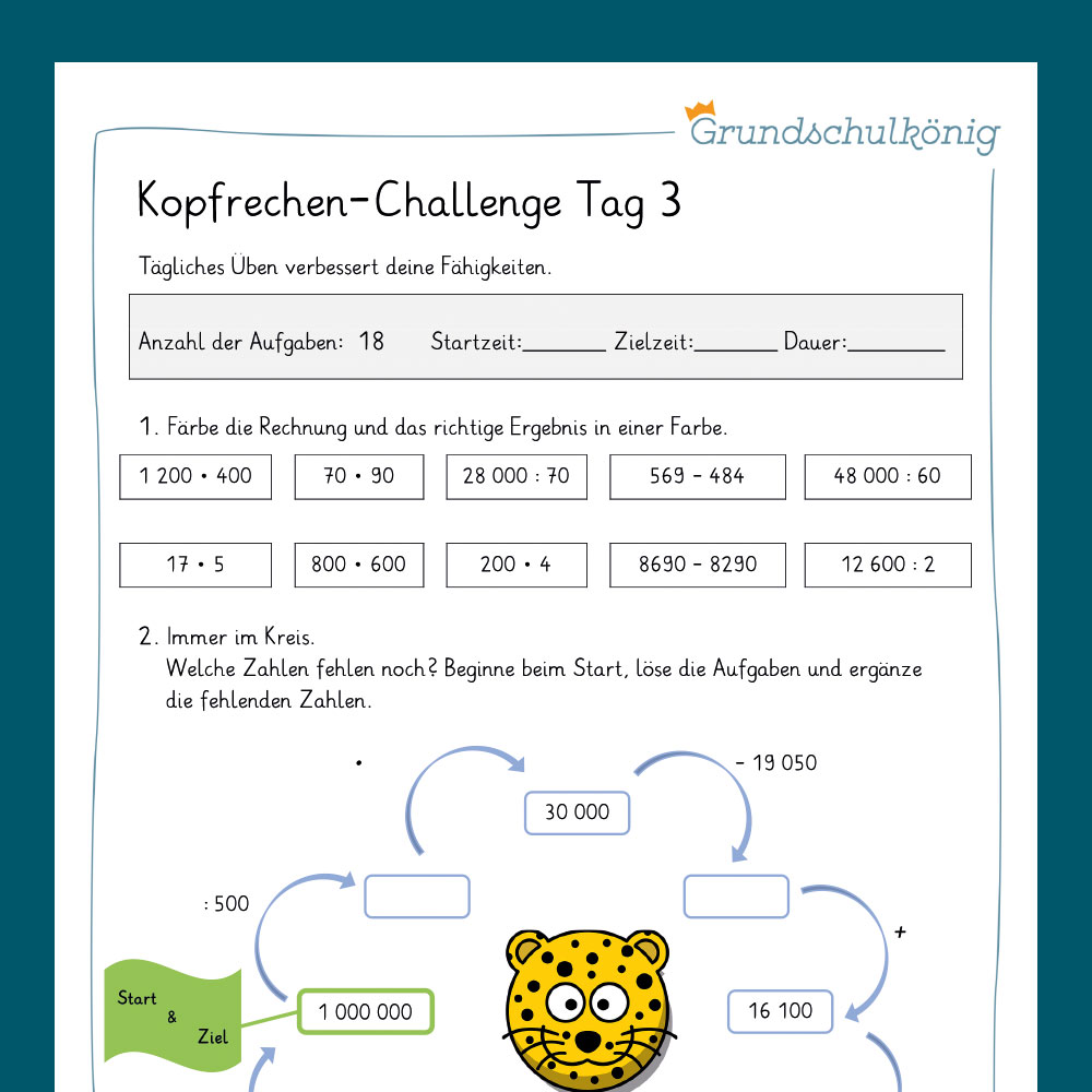 Mit der 14-Tage-Kopfrechen-Challenge des Grundschulkönigs können die Kinder alle gelernten Rechenarten üben und vertiefen!