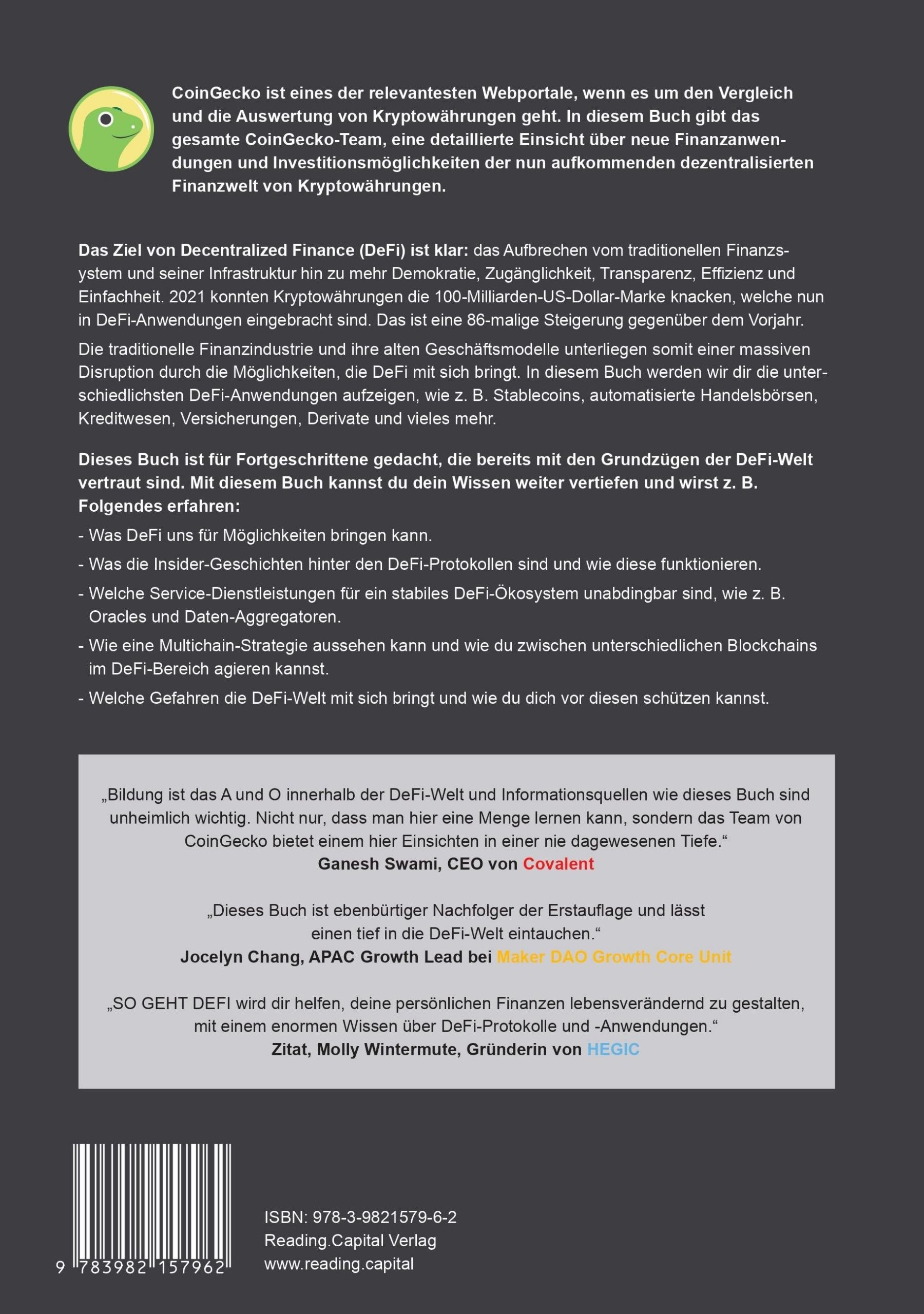 Dieses Buch ist für Fortgeschrittene gedacht, die bereits mit den Grundzügen der DeFi-Welt vertraut sind. Mit diesem Buch kannst du dein Wissen weiter vertiefen und wirst z. B. Folgendes erfahren:
