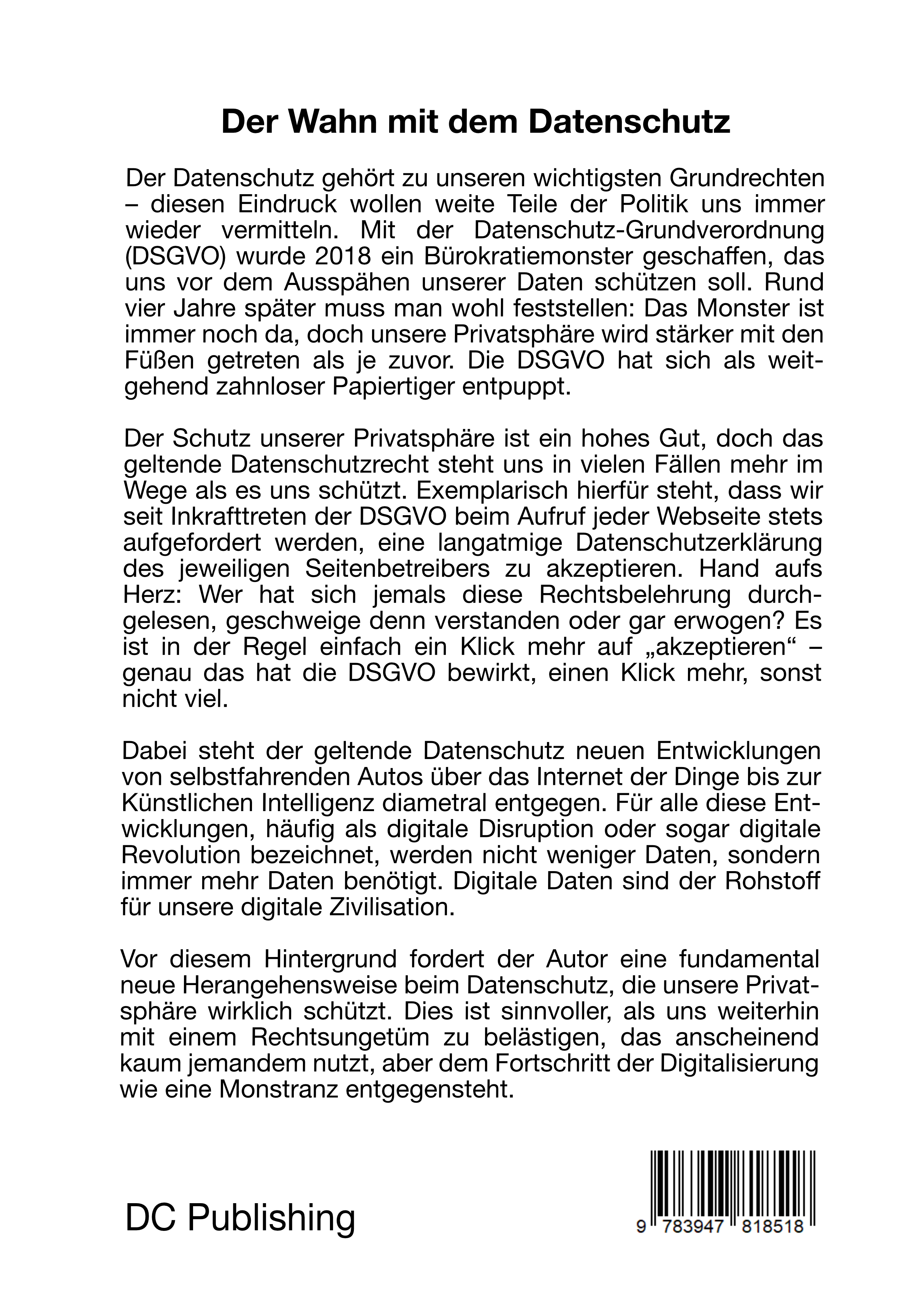 Vor diesem Hintergrund fordert der Autor eine fundamental neue Herangehensweise beim Datenschutz, die unsere Privatsphäre wirklich schützt. Dies ist sinnvoller als uns weiterhin mit einem Rechtsungetüm zu belästigen, da kaum jemandem nutzt, aber dem Fortschritt der Digitalisierung wie eine Monstranz entgegensteht.