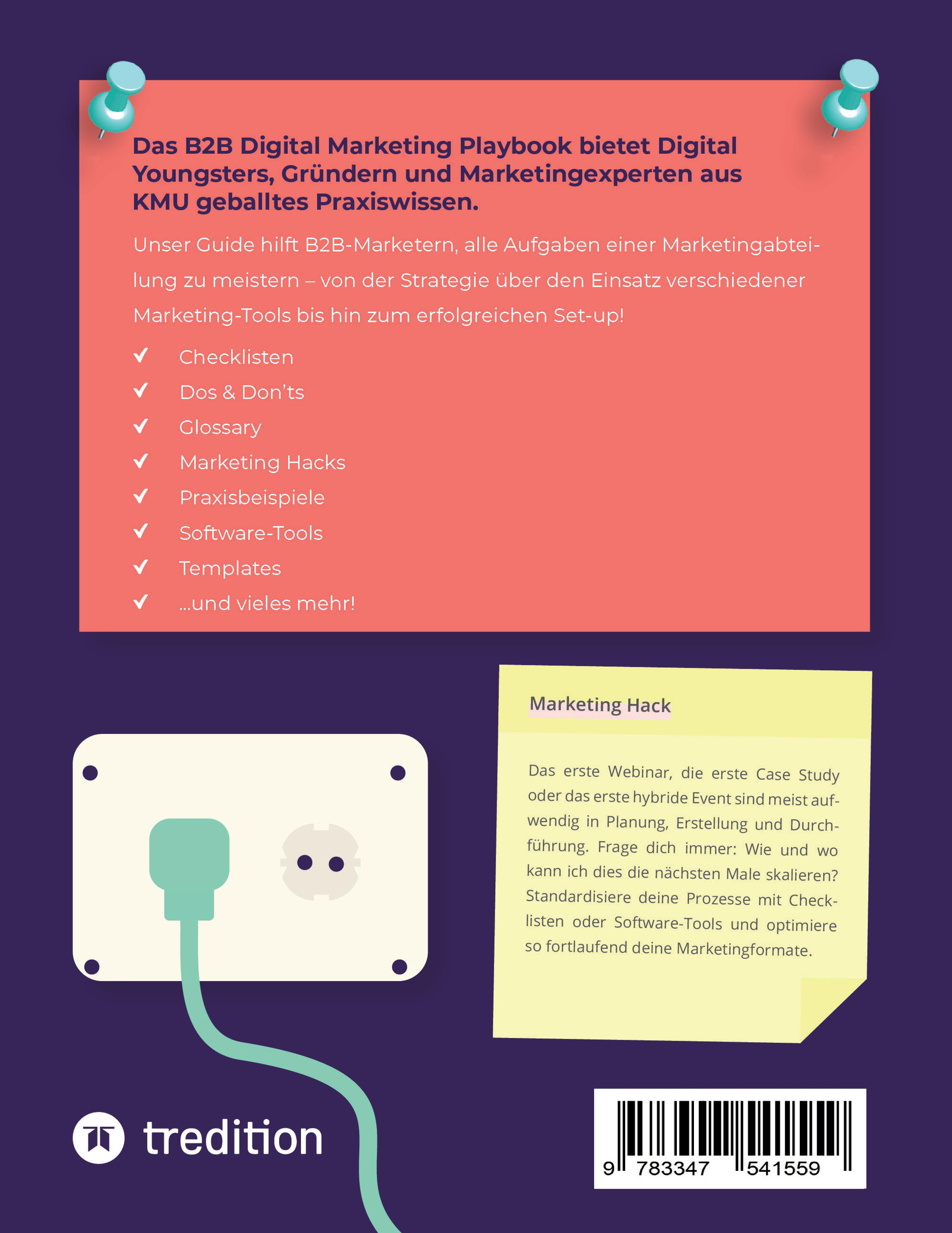 Mit diesem Playbook geben wir Marketingverantwortlichen und -experten aus KMU, Gründern, Digital Youngsters und Studierenden einen Guide für Marketing im digitalen Zeitalter an die Hand! Mit Best Practices, Checklisten, Erfahrungsberichten und verpackt mit jeder Menge Storytelling werden Strategien, Kanäle und Tools aller relevanten Marketingbereiche im B2B adressiert. Darüber hinaus nehmen wir auch die Organisationsentwicklung im Marketing sowie operative Taktiken unter die Lupe.