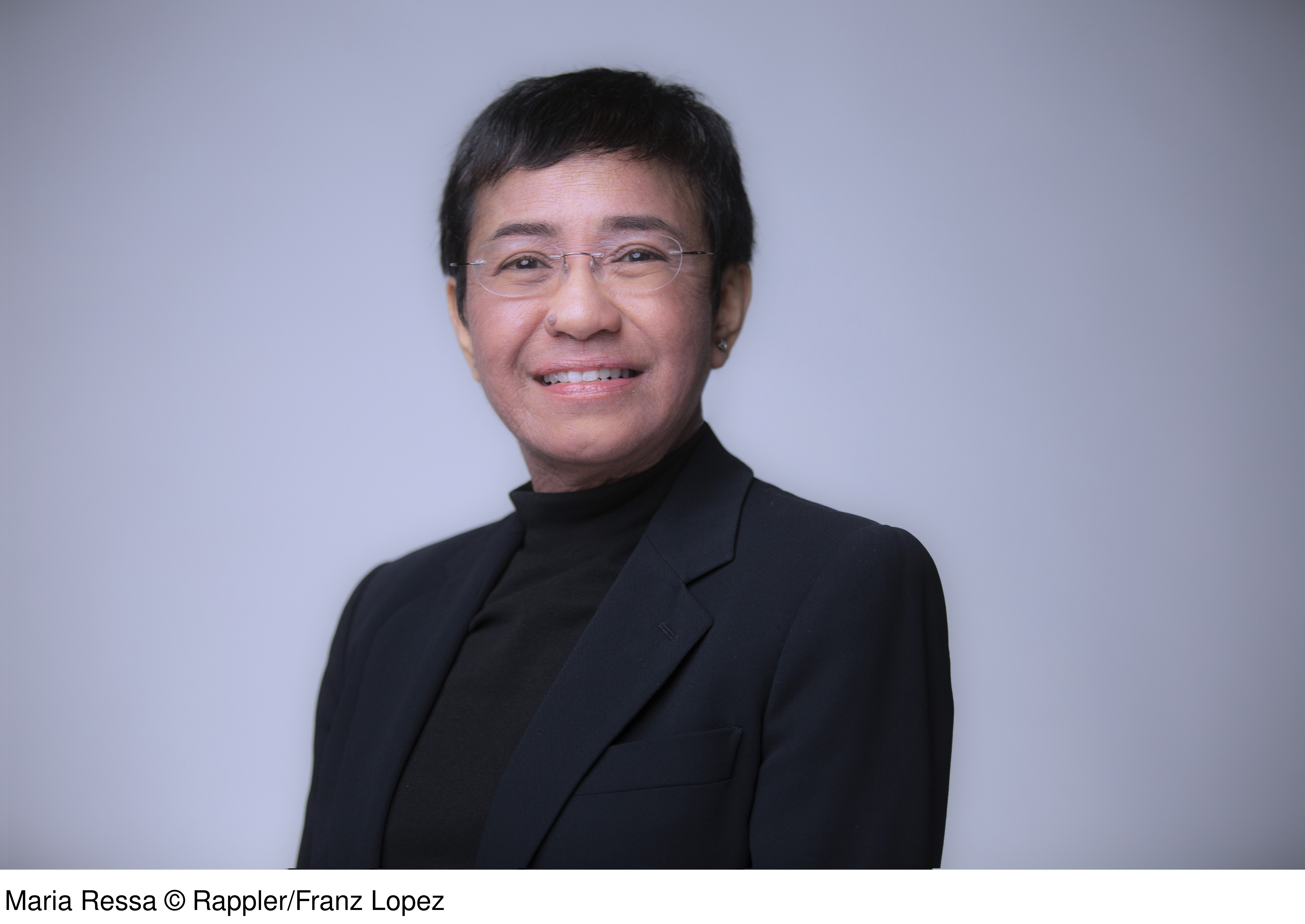 Maria Ressa wurde auf den Philippinen geboren und zog mit neun Jahren in die USA. Nach dem Bachelor in Biologie und Englisch an der Princeton-Universität kehre sie nach Manila zurück und machte ihren Master mit einem Fulbright-Stipendium für politisches Theater an der Universität der Philippinen Diliman. Bis 2005 arbeitete sie in verschiedenen leitenden Positionen beim Nachrichtensender CNN International in Manila und Jakarta (Indonesien). Als leitende Investigativreporterin von CNN in Asien spezialisierte sie sich auf die Untersuchung terroristischer Netzwerke. Bis 2010 leitete Ressa die Abteilung Aktuelles des philippinischen TV- und Online-Networks ABS-CBN und arbeitete weiterhin für CNN und THE WALL STREET JOURNAL. 2012 gründete Ressa gemeinsam mit Kollegen das Online-Nachrichtenportal RAPPLER, das zuvor als Social-Media-Nachrichtenkanal bestand. 2021 erhielt sie den Friedensnobelpreis.