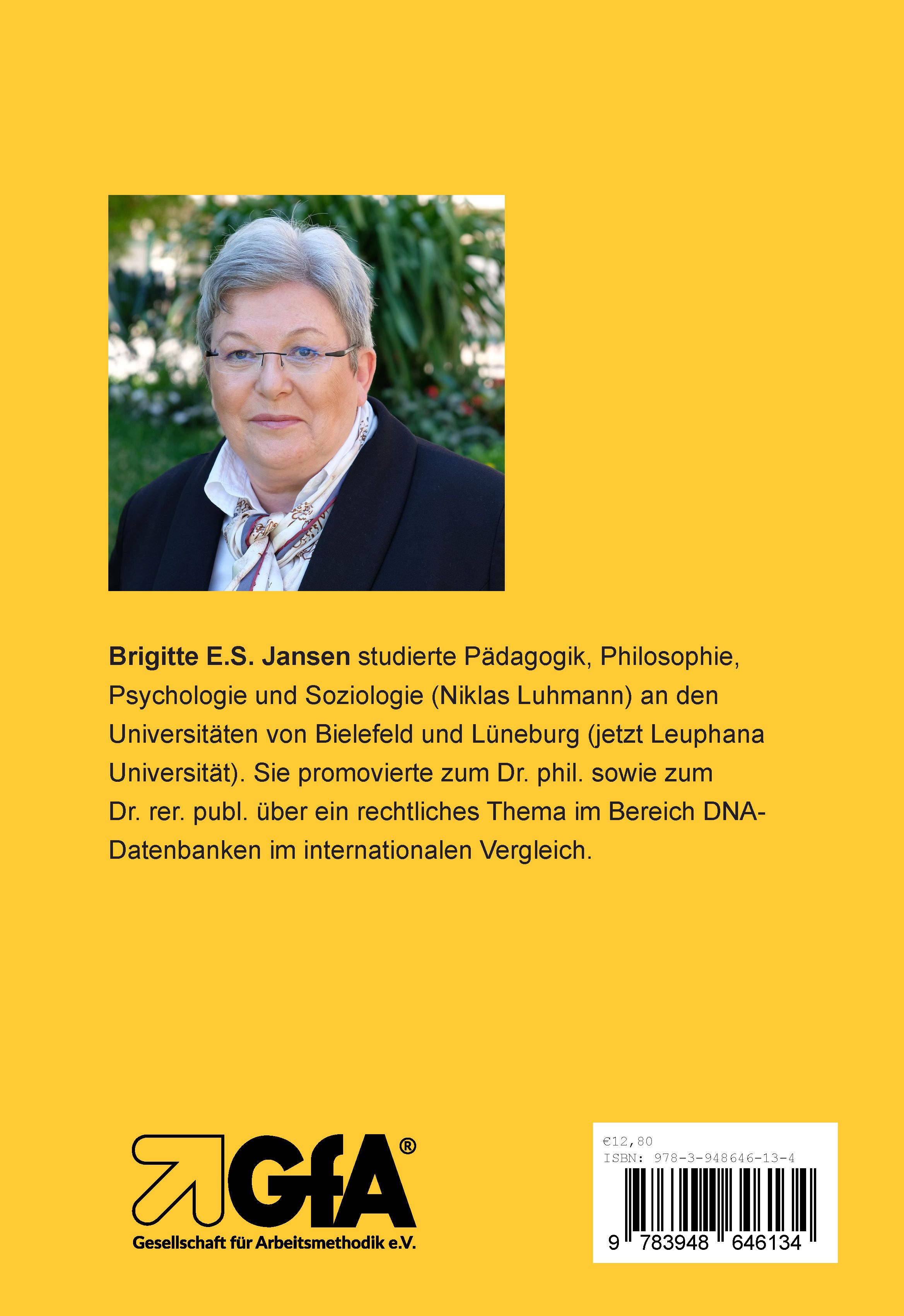 Brigitte E.S. Jansen studierte Pädagogik, Philosophie, Psychologie und Soziologie (Niklas Luhmann) an den Universitäten von Bielefeld und Lüneburg (jetzt Leuphana Universität). Sie promovierte zum Dr. phil. sowie zum Dr. rer. publ. über ein rechtliches Thema im Bereich DNA-Datenbanken im internationalen Vergleich.