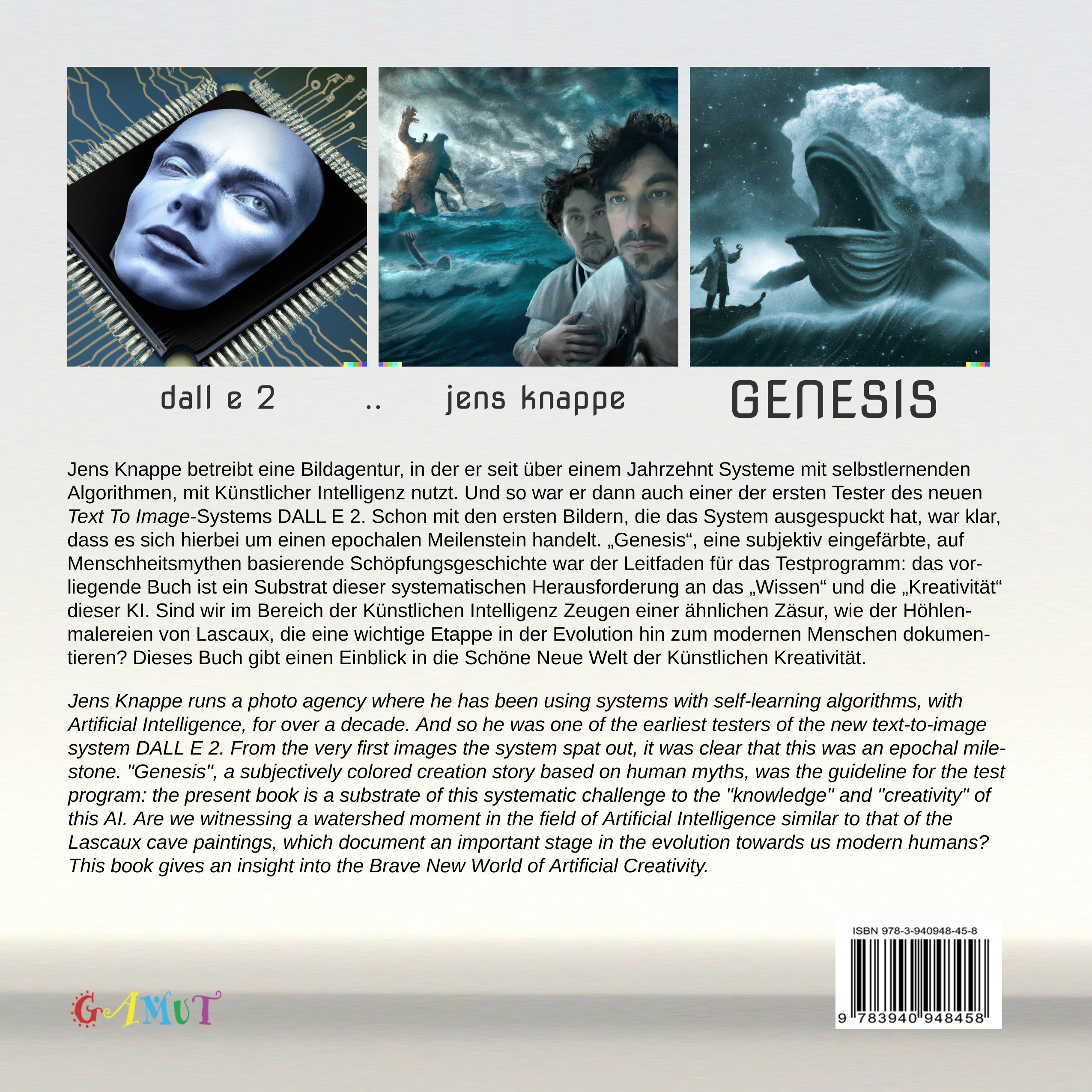 DALL E 2 is part of the most successful Large Language Model to date "GPT3" and therefore can draw on a large part of what has been published on the Internet as its "educational treasure". What could be more obvious than to feed the system with the grand narratives, scientific theories, ancient and modern myths and future visions of humankind and see what comes out? GENESIS, a subjectively colored creation story based on human myths, was the guideline for the test program to AI: this book is a substrate of this systematic challenge to its "knowledge" and "creativity". It is a glimpse into a "black box," since while the technical methods that can be used to improve the performance of these self-learning neural networks which mimic the human brain are being discovered with increasing precision, one question remains unanswered: Why? For what reason are they getting better? Why do the sentences that a chatbot spits out, lining up one word after another according to a probability calculation, become more and more similar to the communication of a real person? So much so, in fact, that even programmers and engineers in developing companies with a sober, prosaic state of mind are increasingly getting the feeling that their computer programs have gained consciousness and sentience.
