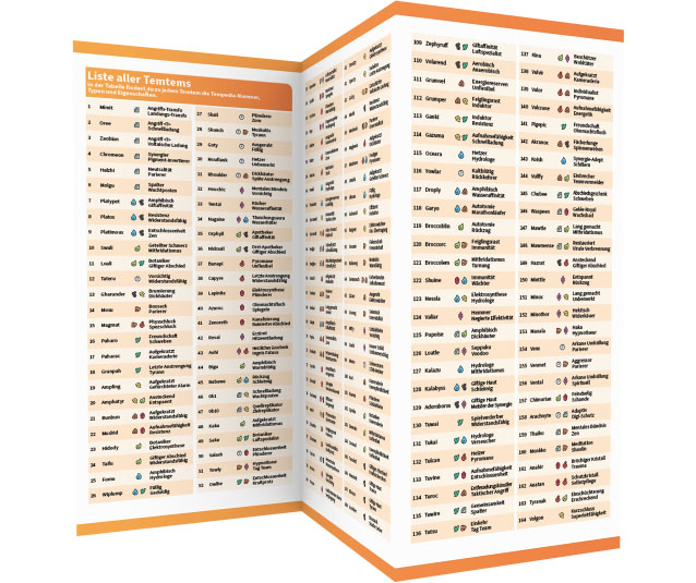 lt;p>Auf dieser praktischen Faltkarte findest du alle wichtigen Infos zu den 164 Temtem im Spiel! Die Karte ist groß (größer als DIN A3!) und übersichtlich und in deutscher Sprache. Endlich kannst du während des Spiels die Typen und Typen-Wechselwirkungen nachschauen, ohne das Spiel unterbrechen zu müssen! Die Karte wurde eigens für Gelegenheitsspieler entwickelt, die sich nicht merken können, welche Eigenschaften welches Temtem haben oder welche Typen gegen welche effektiv sind.