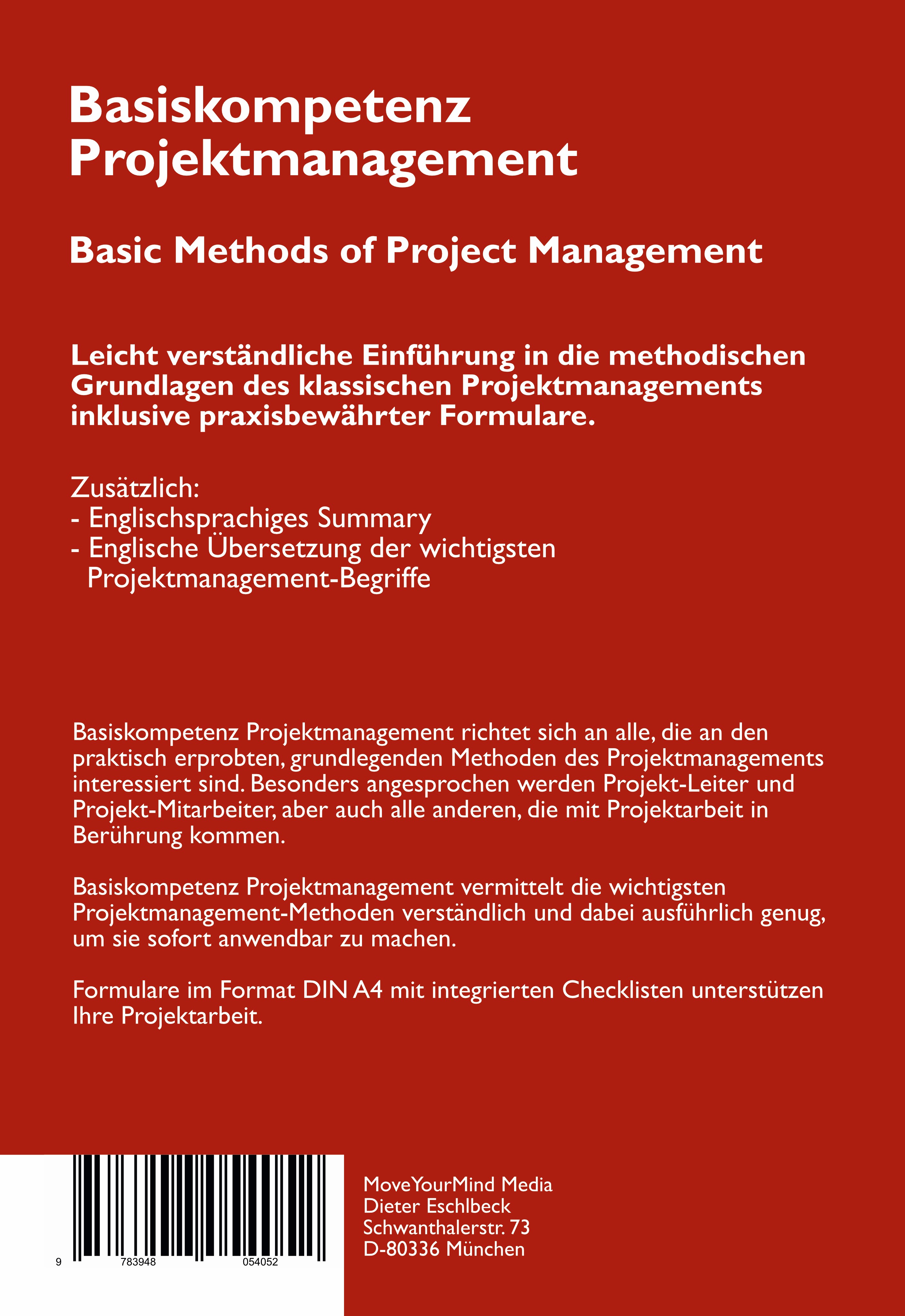 Eine leicht verständliche Einführung in praktikables Projektmanagement. Kurz und verständlich, mit vielen Tipps und Tricks eines erfahrenen Projektmanagement-Profis. Inklusive Glossar, kurze Einführung in SCRUM, Summary auf Englisch und Formularen im Format DIN A4.