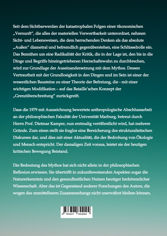 | Schlagworte | Anthropologie • Aufklärung • Ethnologie • Georges Bataille • Gesellschaftskritik • Gesellschaftswissenschaften • Kritische Philosophie • Lévi-Strauss • Magisches Denken • Michel Foucault • Mythendeutung • Mythisches Denken • Mythos • Philosophie • Prof. Dietmar Kamper • Semiologie • Strukturalismus • Theorie der Befreiung • Vergleichende Religionswissenschaften |