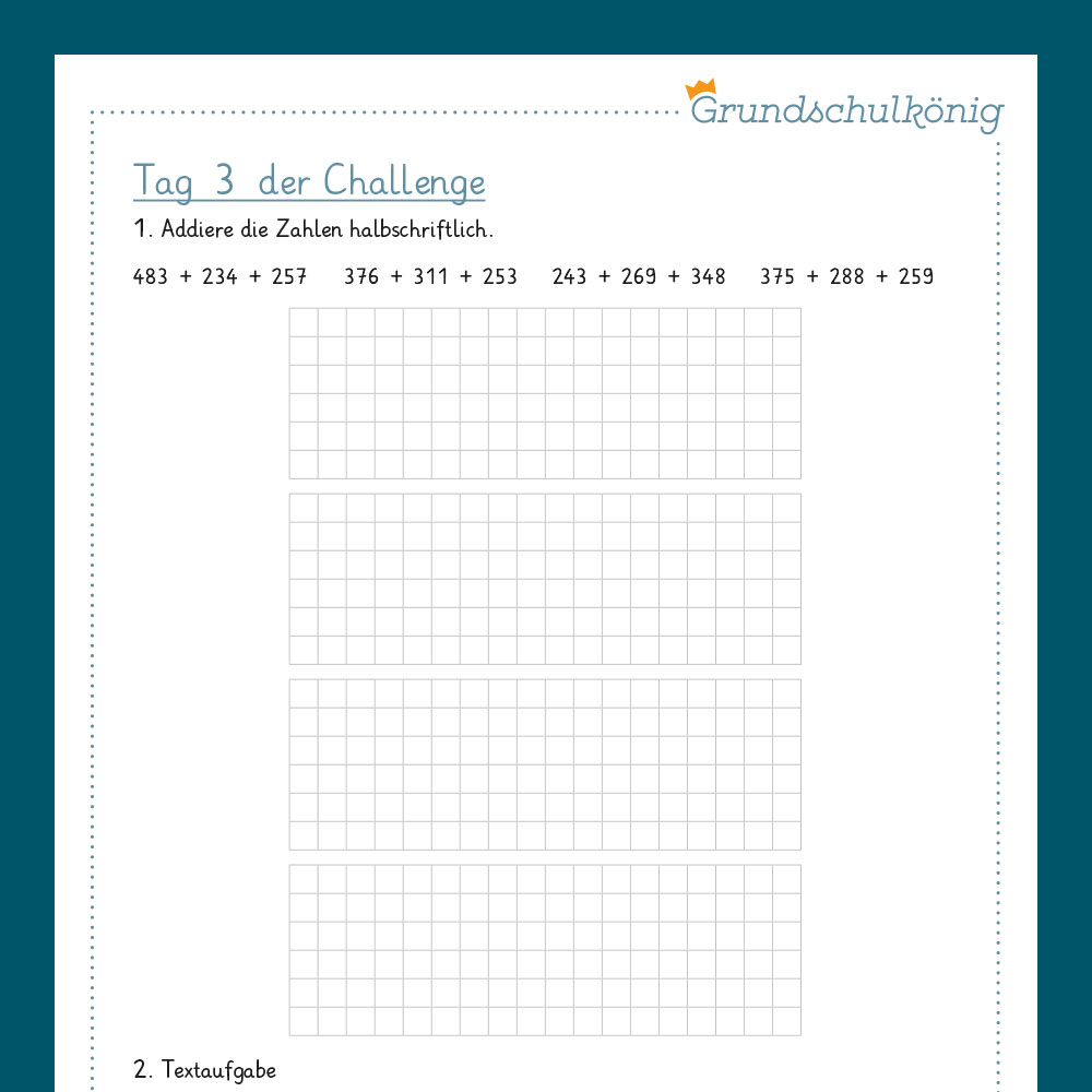 7-Tage-Challenge zum halbschriftlichen Verfahren der Addition, 3. Klasse