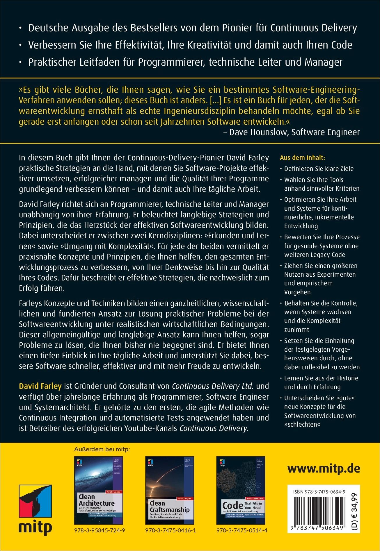In diesem Buch gibt Ihnen der Continuous-Delivery-Pionier David Farley Strategien an die Hand, mit denen Sie Software-Projekte effektiver umsetzen, erfolgreicher managen und die Qualität Ihrer Programme grundlegend verbessern können - und damit auch Ihr Leben und das Ihrer Kollegen.