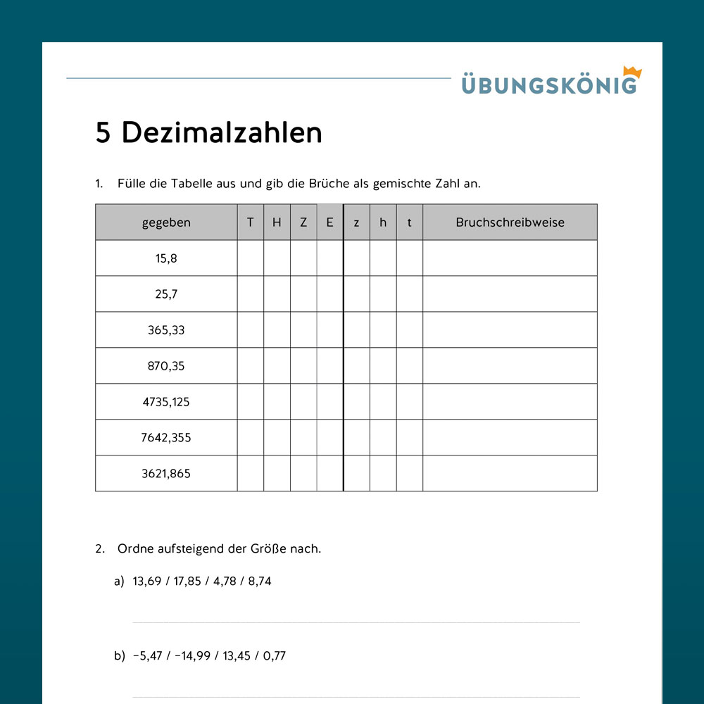 Mathe, 6. Klasse, Arbeitsblättersammlung mit Lösungen