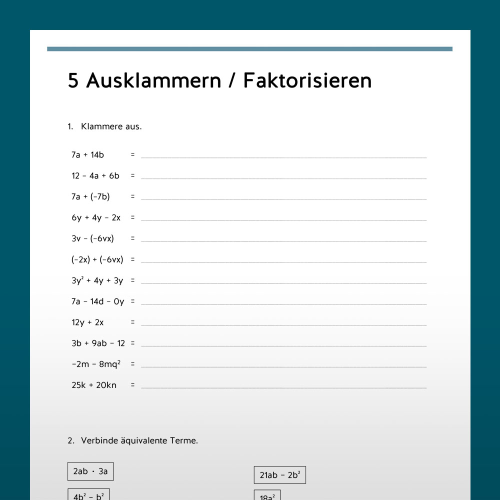 Mathe, 7. Klasse, Arbeitsblättersammlung mit Lösungen