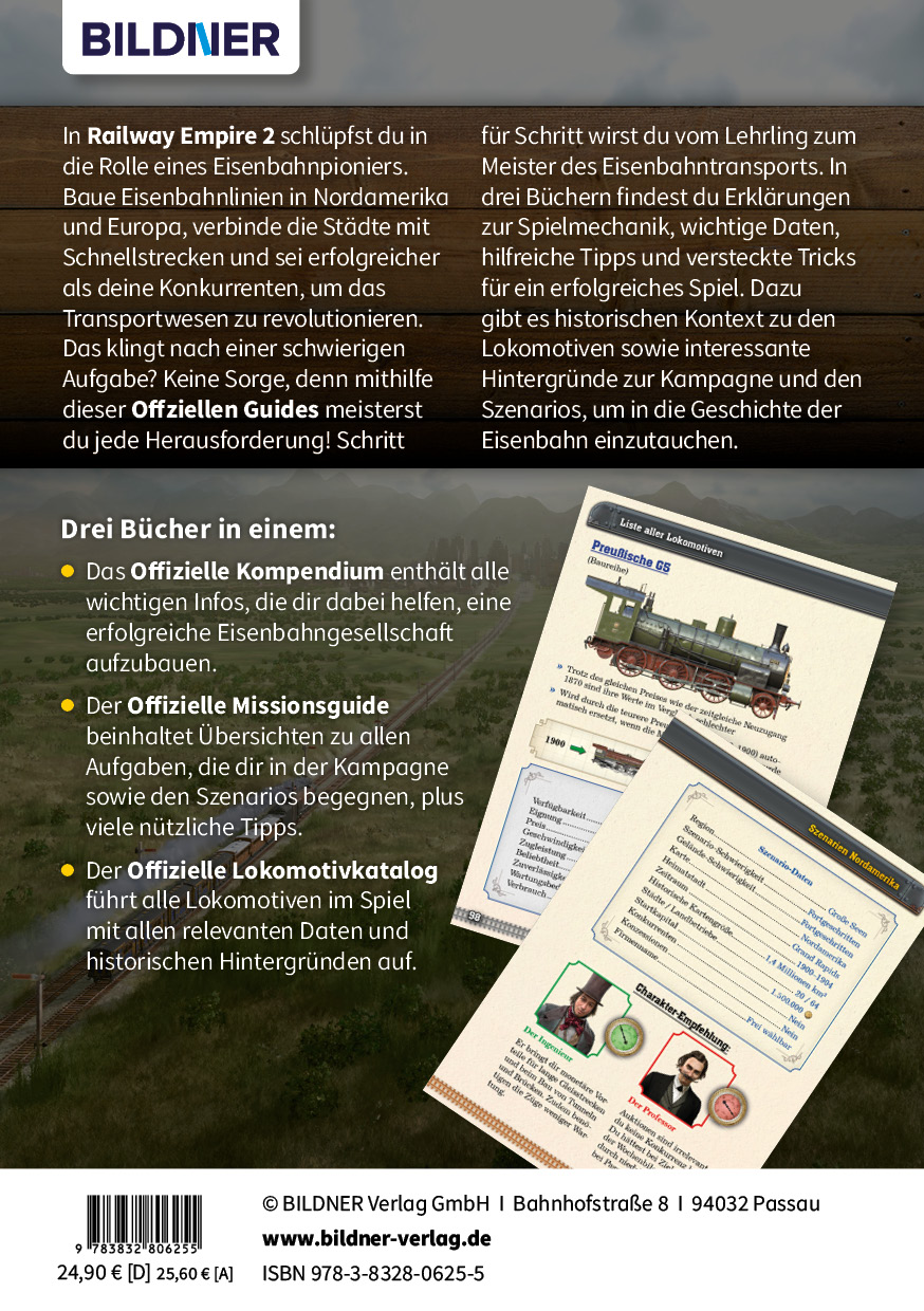 lt;p>In Railway Empire 2 schlüpfst du in die Rolle eines Eisenbahnpioniers. Baue Eisenbahnlinien in Nordamerika und Europa, verbinde die Städte mit Schnellstrecken und sei erfolgreicher als deine Konkurrenten, um das Transportwesen zu revolutionieren. Das klingt nach einer schwierigen Aufgabe? Keine Sorge, denn mithilfe dieser Offziellen Guides meisterst du jede Herausforderung! Schritt für Schritt wirst du vom Lehrling zum Meister des Eisenbahntransports. In drei Büchern findest du Erklärungen zur Spielmechanik, wichtige Daten, hilfreiche Tipps und versteckte Tricks für ein erfolgreiches Spiel. Dazu gibt es historischen Kontext zu den Lokomotiven sowie interessante Hintergründe zur Kampagne und den Szenarios, um in die Geschichte der Eisenbahn einzutauchen.