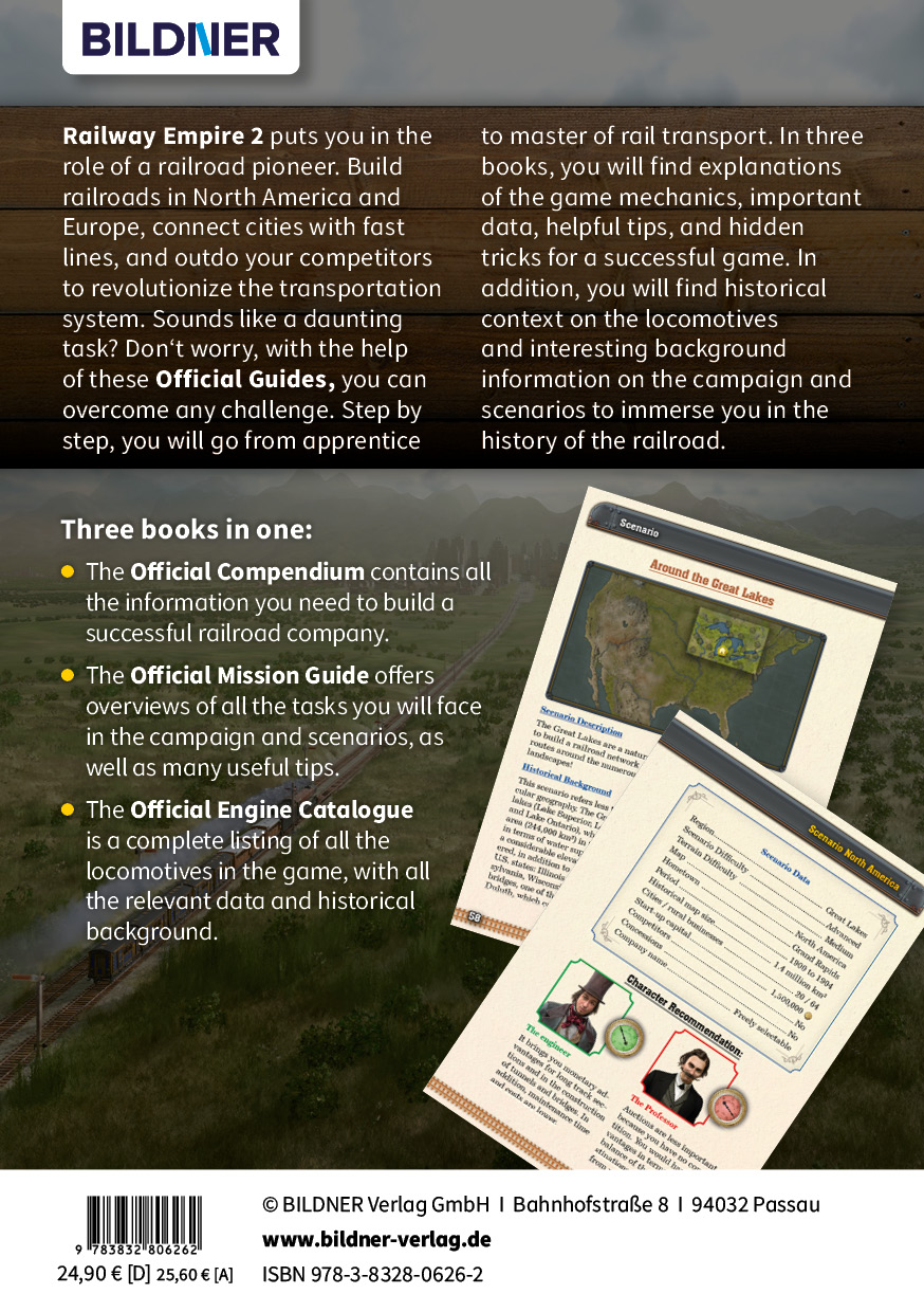 lt;p> Railway Empire 2 puts you in the role of a railroad pioneer. Build railroads in North America and Europe, connect cities with fast lines, and outdo your competitors to revolutionize the transportation system. Sounds like a daunting task? Don't worry, with the help of these Official Guides, you can overcome any challenge. Step by step, you will go from apprentice to master of rail transport. In three books, you will find explanations of the game mechanics, important data, helpful tips, and hidden tricks for a successful game. In addition, you will find historical context on the locomotives and interesting background information on the campaign and scenarios to immerse you in the history of the railroad.