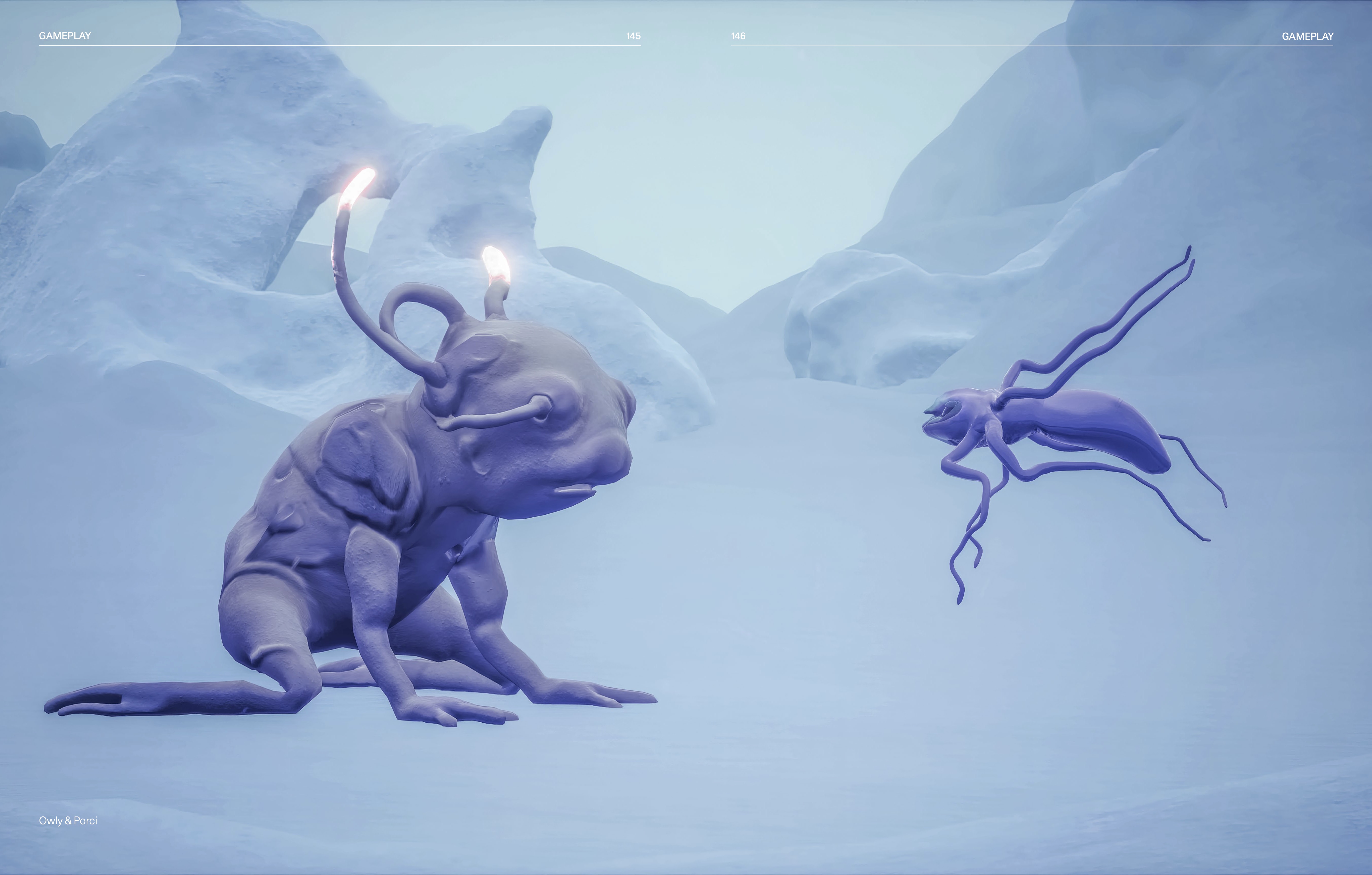 Inspiriert von digitalen Technologien und Szenerien aus Computerspielen schafft die Künstlerin Mary-Audrey Ramirez (geb. 1990 in Luxemburg, Luxemburg; lebt und arbeitet in Berlin) immersive Welten, die aus ihrem eigenen inneren Kosmos stammen. Ihre Installationen erwecken beim Betrachten den Eindruck, sich inmitten von Games zu befinden. Dafür macht sie sich auch das kreative Potenzial künstlicher Intelligenz zunutze. Ramirez sieht dies als Zusammenarbeit von Mensch und Maschine, die sich gegenseitig in ihrem Schaffensprozess unterstützen. Fakten und Fiktionen miteinander zu verbinden sowie die stetige Migration des Digitalen in unsere Welt sind integrale Bestandteile ihrer Praxis. Dabei erscheinen die Arbeiten der Künstlerin wie eine Reise in ihre nächtlichen Träume.