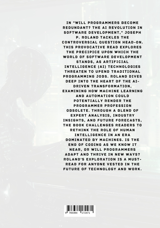 In "Will Programmers Become Redundant? The AI Revolution in Software Development," Joseph P. Roland tackles the controversial question head-on. This provocative read explores the precipice upon which the world of software development stands, as artificial intelligence (AI) technologies threaten to upend traditional programming jobs. Roland dives deep into the heart of the AI-driven transformation, examining how machine learning and automation could potentially render the programmer profession obsolete. Through a blend of expert analysis, industry insights, and future forecasts, the book challenges readers to rethink the role of human intelligence in an era dominated by machines. Is the end of coding as we know it near, or will programmers adapt and thrive in new ways? Roland's exploration is a must-read for anyone vested in the future of technology and work.