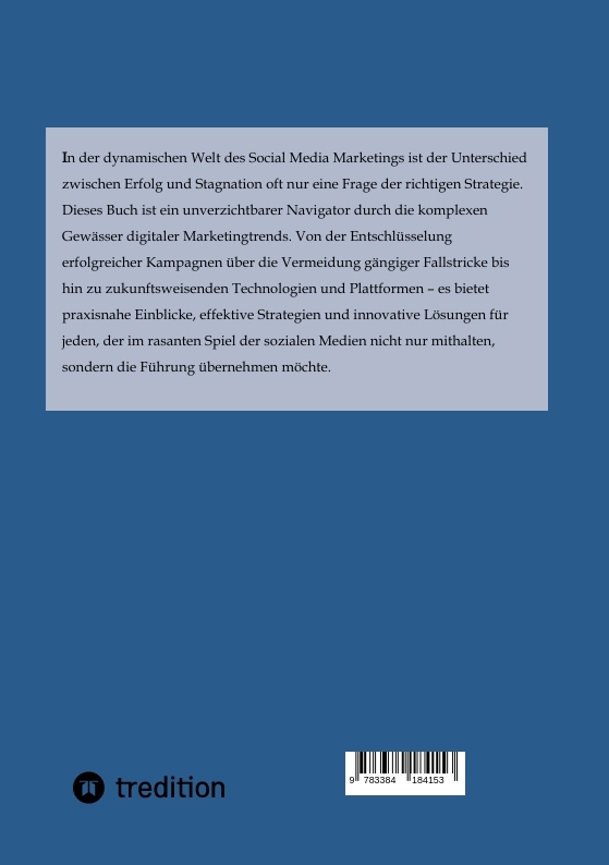 In der dynamischen Welt des Social Media Marketings ist der Unterschied zwischen Erfolg und Stagnation oft nur eine Frage der richtigen Strategie. Dieses Buch ist ein unverzichtbarer Navigator durch die komplexen Gewässer digitaler Marketingtrends. Von der Entschlüsselung erfolgreicher Kampagnen über die Vermeidung gängiger Fallstricke bis hin zu zukunftsweisenden Technologien und Plattformen - es bietet praxisnahe Einblicke, effektive Strategien und innovative Lösungen für jeden, der im rasanten Spiel der sozialen Medien nicht nur mithalten, sondern die Führung übernehmen möchte.