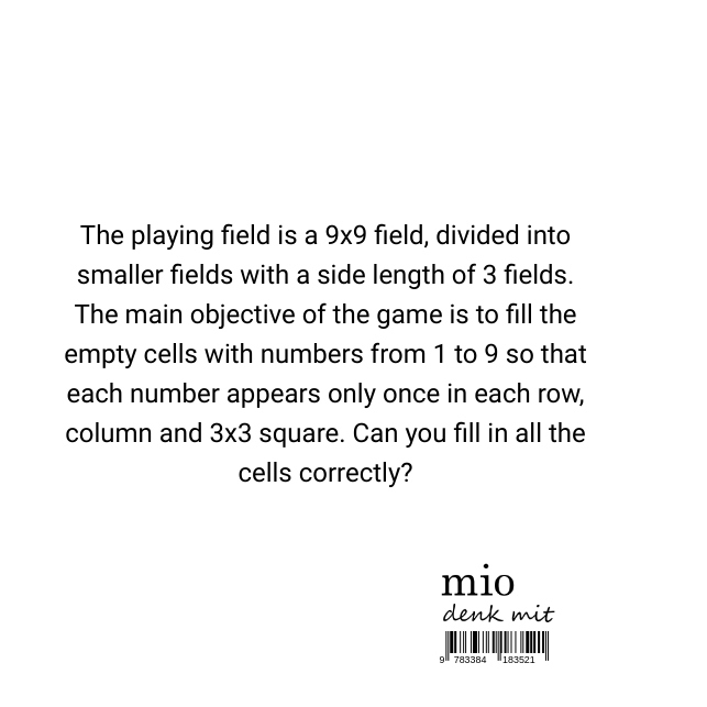 | Schlagworte | 50 Sudoku puzzles • Jakob Welik • Learn Sudoku • mio think along • solve riddles • Sudoku • Sudoku English • Sudoku for beginners • Sudoku for everyone • Understanding Sudoku |