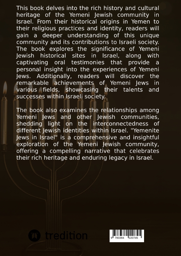 This book delves into the rich history and cultural heritage of the Yemeni Jewish community in Israel. From their historical origins in Yemen to their religious practices and identity, readers will gain a deeper understanding of this unique community and its contributions to Israeli society. The book explores the significance of Yemeni Jewish historical sites in Israel, along with captivating oral testimonies that provide a personal insight into the experiences of Yemeni Jews. Additionally, readers will discover the remarkable achievements of Yemeni Jews in various fields, showcasing their talents and successes within Israeli society.The book also examines the relationships among Yemeni Jews and other Jewish communities, shedding light on the interconnectedness of different Jewish identities within Israel. "Yemenite Jews in Israel" is a comprehensive and insightful exploration of the Yemeni Jewish community, offering a compelling narrative that celebrates their rich heritage and enduring legacy in Israel.