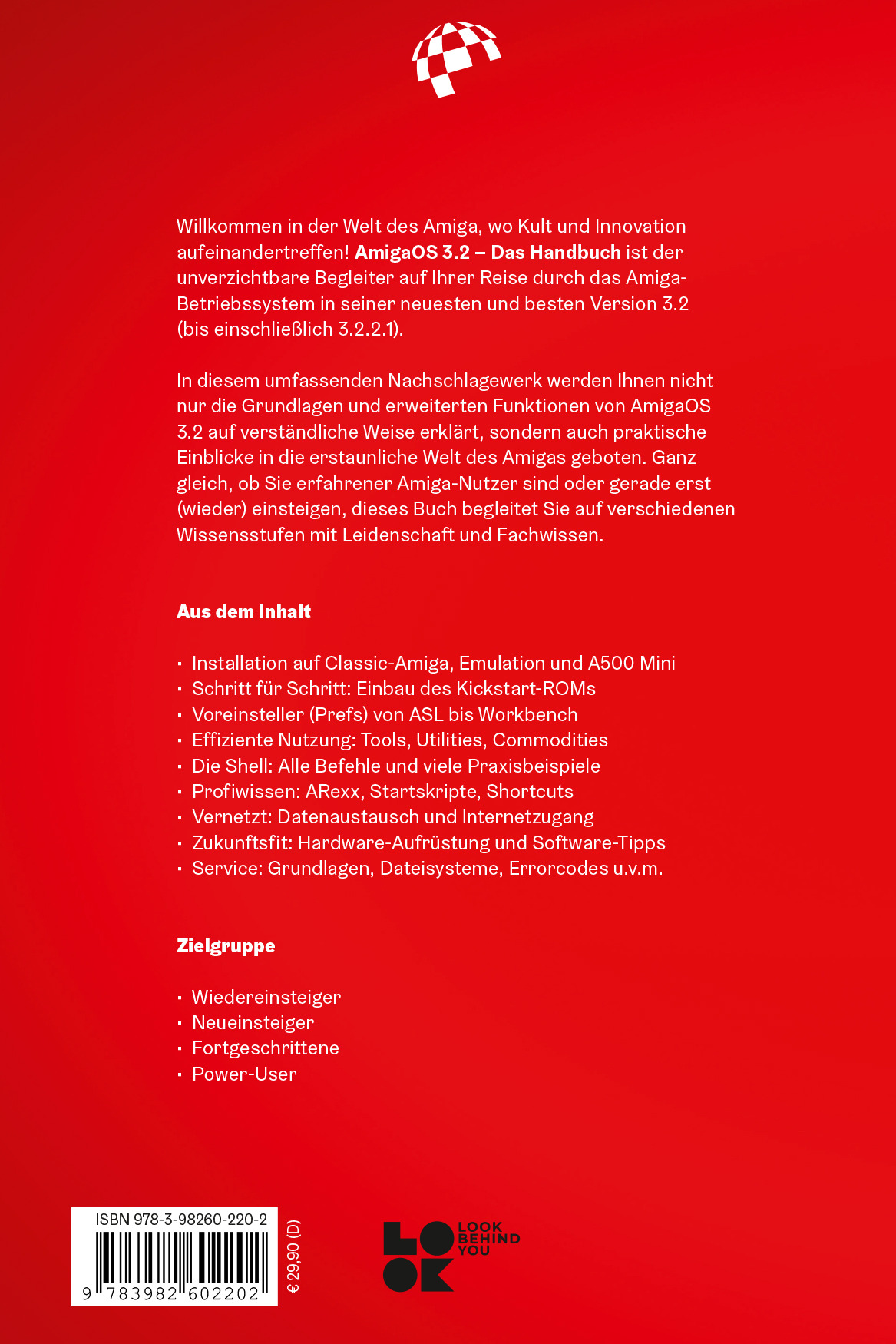 "AmigaOS 3.2 – Das Handbuch" ist Ihr unverzichtbarer Wegweiser auf Ihrer Reise durch das Amiga-Betriebssystem in seiner neuesten und besten Version 3.2. In diesem 512 Seiten starken Nachschlagewerk werden Ihnen nicht nur die Grundlagen und erweiterten Funktionen von AmigaOS 3.2 (bis einschließlich 3.2.2.1) auf verständliche Weise erklärt, sondern auch praktische Einblicke in das Amiga-System geboten, von A bis Z. Ganz gleich, ob Sie erfahrener Amiga-Nutzer sind oder gerade erst (wieder) einsteigen, dieses Buch begleitet Sie auf verschiedenen Wissensstufen mit Leidenschaft und Fachwissen.