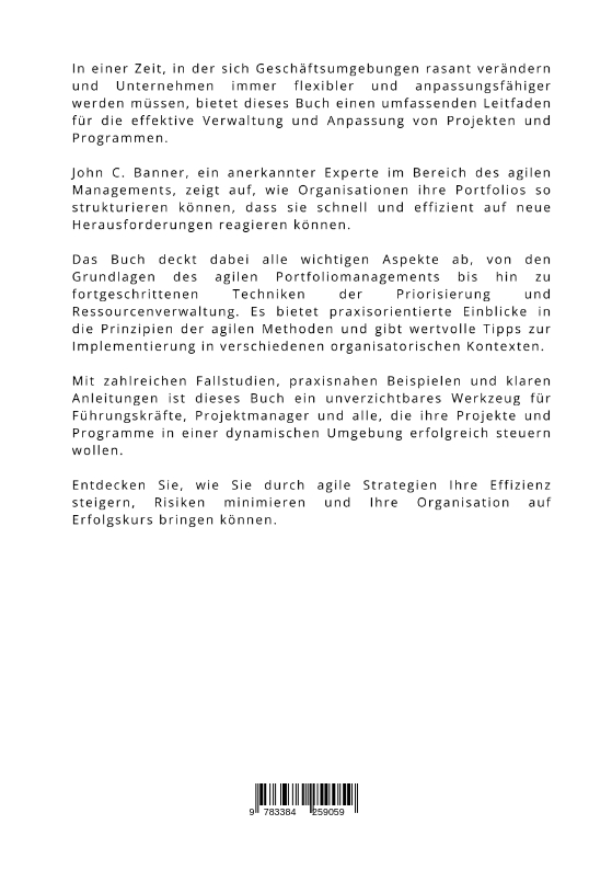 In einer Zeit, in der sich Geschäftsumgebungen rasant verändern und Unternehmen immer flexibler und anpassungsfähiger werden müssen, bietet dieses Buch einen umfassenden Leitfaden für die effektive Verwaltung und Anpassung von Projekten und Programmen.John C. Banner, ein anerkannter Experte im Bereich des agilen Managements, zeigt auf, wie Organisationen ihre Portfolios so strukturieren können, dass sie schnell und effizient auf neue Herausforderungen reagieren können.Das Buch deckt dabei alle wichtigen Aspekte ab, von den Grundlagen des agilen Portfoliomanagements bis hin zu fortgeschrittenen Techniken der Priorisierung und Ressourcenverwaltung. Es bietet praxisorientierte Einblicke in die Prinzipien der agilen Methoden und gibt wertvolle Tipps zur Implementierung in verschiedenen organisatorischen Kontexten.Mit zahlreichen Fallstudien, praxisnahen Beispielen und klaren Anleitungen ist dieses Buch ein unverzichtbares Werkzeug für Führungskräfte, Projektmanager und alle, die ihre Projekte und Programme in einer dynamischen Umgebung erfolgreich steuern wollen.Entdecken Sie, wie Sie durch agile Strategien Ihre Effizienz steigern, Risiken minimieren und Ihre Organisation auf Erfolgskurs bringen können.