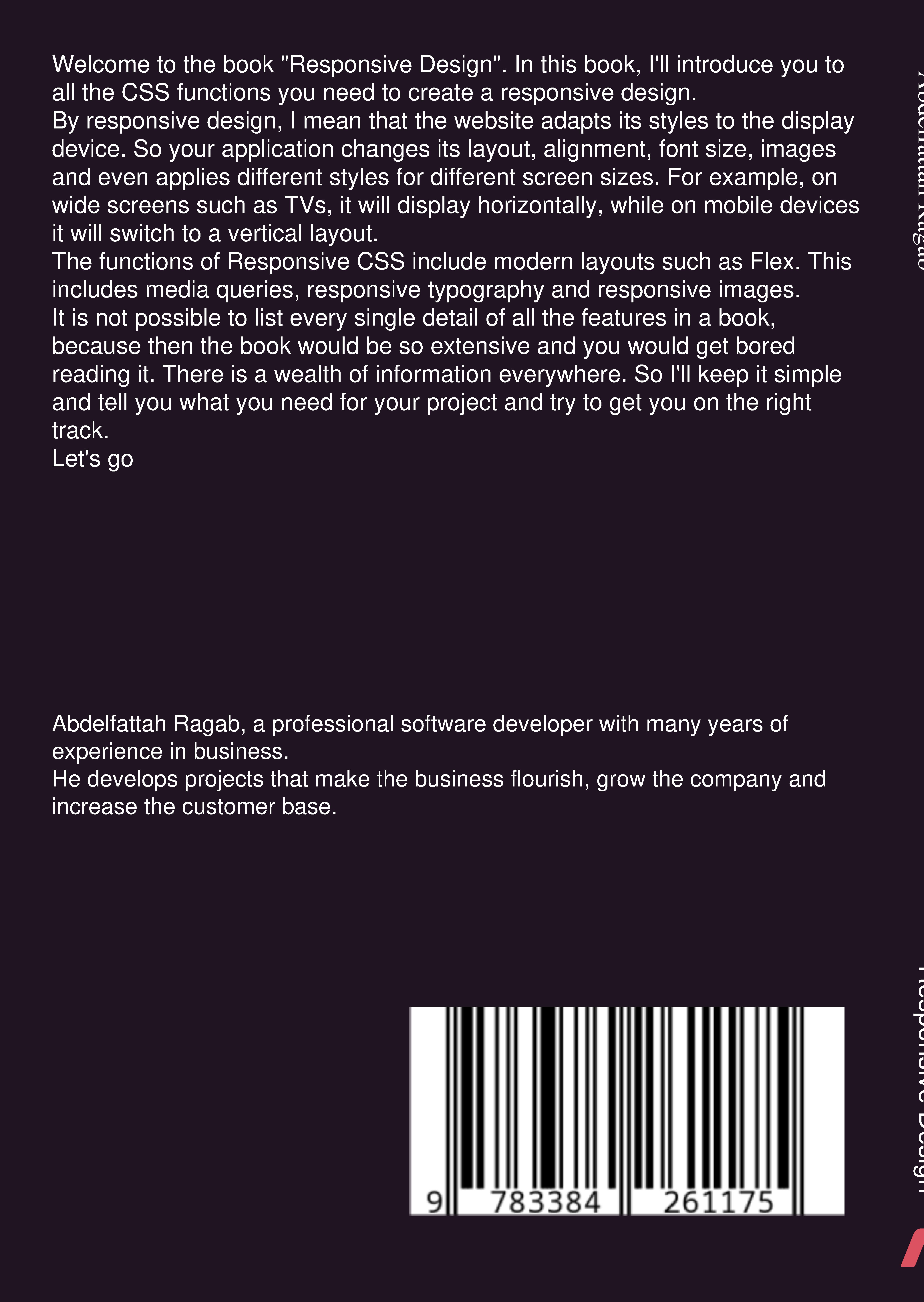 Welcome to the book "Responsive Design". In this book, I'll introduce you to all the CSS functions you need to create a responsive design.By responsive design, I mean that the website adapts its styles to the display device. So your application changes its layout, alignment, font size, images and even applies different styles for different screen sizes. For example, on wide screens such as TVs, it will display horizontally, while on mobile devices it will switch to a vertical layout.The functions of Responsive CSS include modern layouts such as Flex. This includes media queries, responsive typography and responsive images.It is not possible to list every single detail of all the features in a book, because then the book would be so extensive and you would get bored reading it. There is a wealth of information everywhere. So I'll keep it simple and tell you what you need for your project and try to get you on the right track.Let's go