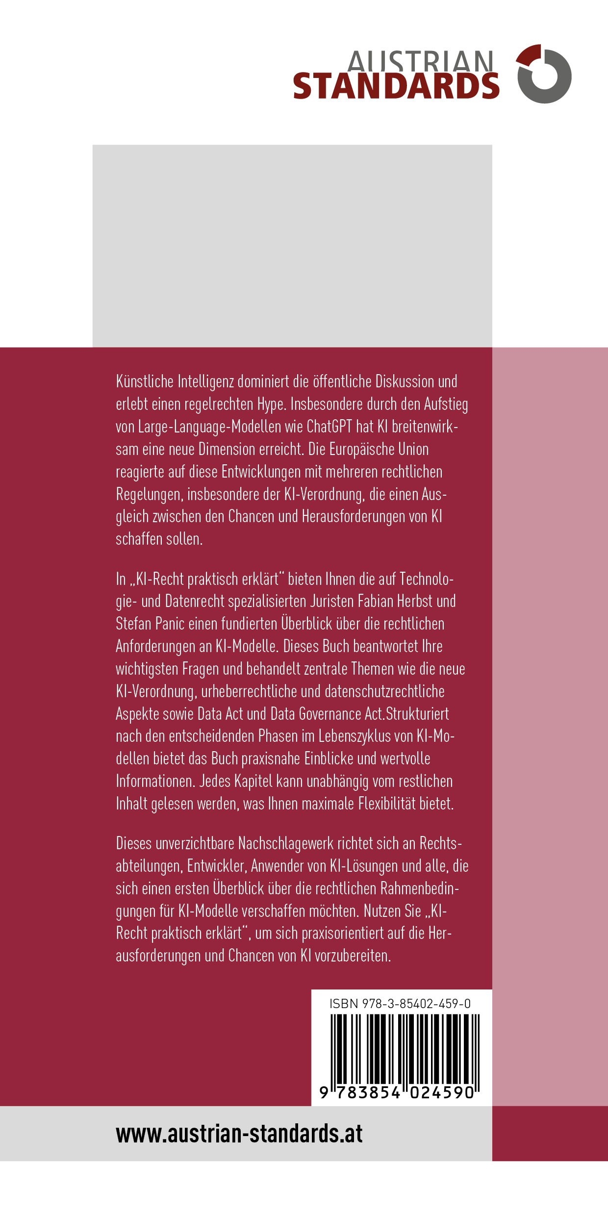 | Schlagworte | Act Data Act • AI • AI Act • Artificial Intelligence • ChatGPT • data governance • Datenschutzgesetz (DSG) • EU-Datenschutz-Grundverordnung (DSGVO) • KI • KI-Anwendung • KI-Haftungsrichtlinie • KI-Modell • KI-System • KI-Verordnung • Künstliche Intelligenz • Large language model • Open-Data-Regulierung • Produkthaftung • Produkthaftungsgesetz • Produkthaftungsrichtlinie • Urheberrecht |