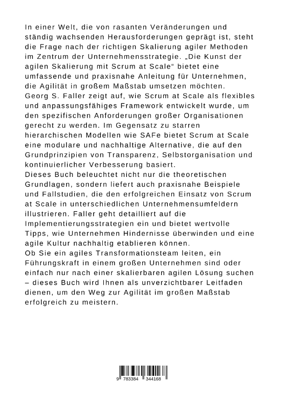In einer Welt, die von rasanten Veränderungen und ständig wachsenden Herausforderungen geprägt ist, steht die Frage nach der richtigen Skalierung agiler Methoden im Zentrum der Unternehmensstrategie. "Die Kunst der agilen Skalierung mit Scrum at Scale" bietet eine umfassende und praxisnahe Anleitung für Unternehmen, die Agilität in großem Maßstab umsetzen möchten.Georg S. Faller zeigt auf, wie Scrum at Scale als flexibles und anpassungsfähiges Framework entwickelt wurde, um den spezifischen Anforderungen großer Organisationen gerecht zu werden. Im Gegensatz zu starren hierarchischen Modellen wie SAFe bietet Scrum at Scale eine modulare und nachhaltige Alternative, die auf den Grundprinzipien von Transparenz, Selbstorganisation und kontinuierlicher Verbesserung basiert.Dieses Buch beleuchtet nicht nur die theoretischen Grundlagen, sondern liefert auch praxisnahe Beispiele und Fallstudien, die den erfolgreichen Einsatz von Scrum at Scale in unterschiedlichen Unternehmensumfeldern illustrieren. Faller geht detailliert auf die Implementierungsstrategien ein und bietet wertvolle Tipps, wie Unternehmen Hindernisse überwinden und eine agile Kultur nachhaltig etablieren können.Ob Sie ein agiles Transformationsteam leiten, ein Führungskraft in einem großen Unternehmen sind oder einfach nur nach einer skalierbaren agilen Lösung suchen - dieses Buch wird Ihnen als unverzichtbarer Leitfaden dienen, um den Weg zur Agilität im großen Maßstab erfolgreich zu meistern.