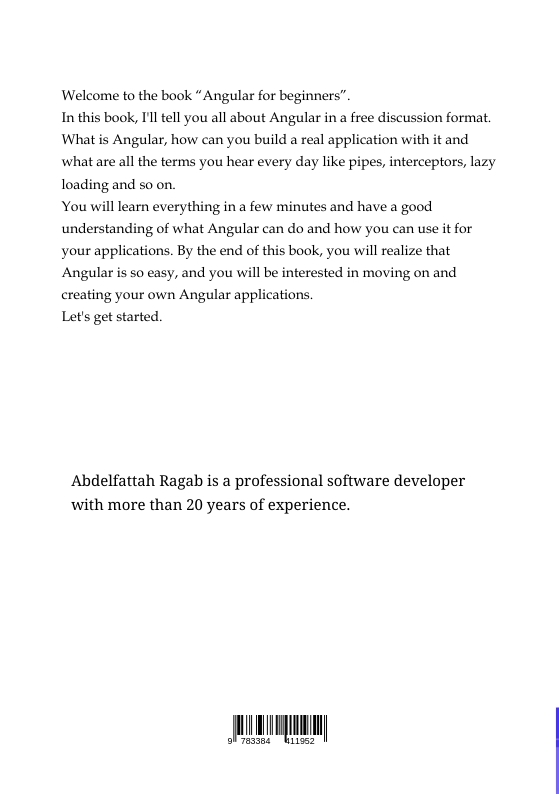 Hello, I am Abdelfattah Ragab, a professional software developer with more than 20 years of experience. I am an expert in Angular, CSS, graphic design and all web related technologies. I have published numerous books on modern CSS layouts and Angular as well as complete business solutions for e-commerce and the like. I hope you enjoy my books. With kind regards.