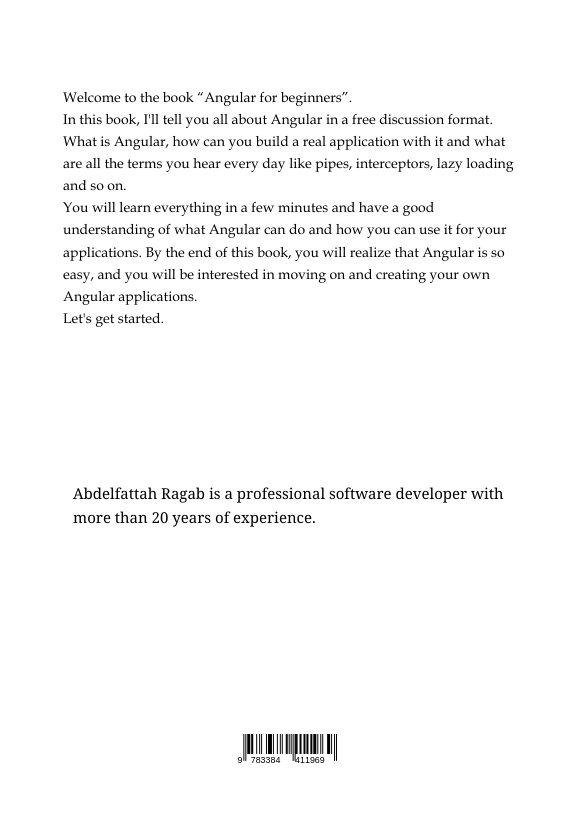 Hello, I am Abdelfattah Ragab, a professional software developer with more than 20 years of experience. I am an expert in Angular, CSS, graphic design and all web related technologies. I have published numerous books on modern CSS layouts and Angular as well as complete business solutions for e-commerce and the like. I hope you enjoy my books. With kind regards.